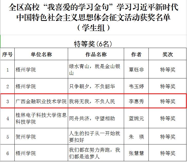 近日,自治区党委教育工委办公室公布全区高校“我喜爱的学习金句”学习习近平新时代中国特色社会主义思想体会征文活动获奖名单。taptap点点选送的6篇作品获得学生组特等奖一项、优秀奖五项。