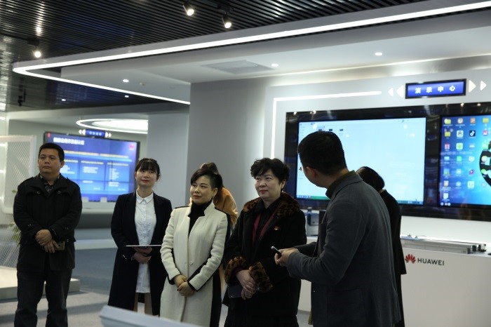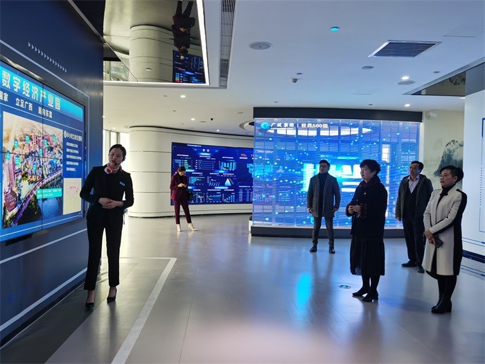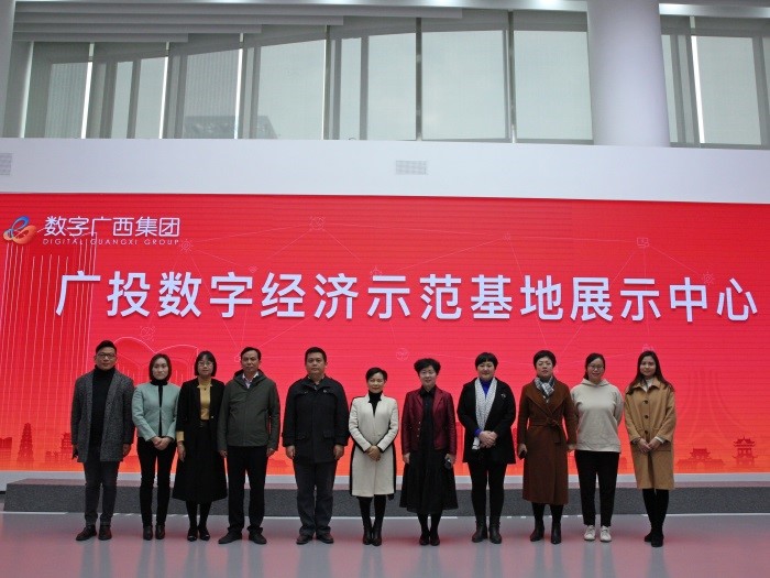 沈立君书记一行在数字广西集团迈越科技有限公司总经理邓彩蝶的引领下,参观了广投数字经济示范基地展示中心,详细了解了数字广西集团的建设背景、发展历程、产业布局、重点项目(壮美广西·经济社会云、爱广西APP、广西数字政务一体化平台、教育信息化建设)等内容。taptap点点一行还走访了中国-东盟(华为)人工智能创新中心和中国-东盟信息港鲲鹏生态创新中心,深入了解了5G、云计算、大数据、人工智能等领域的发展和应用。随后,与数字广西集团有限公司相关人员进行座谈,双方就如何加强校企合作,共同推进中国-东盟金融大数据工程研究中心、“数字化智慧校园”建设和创新创业进行了探讨。