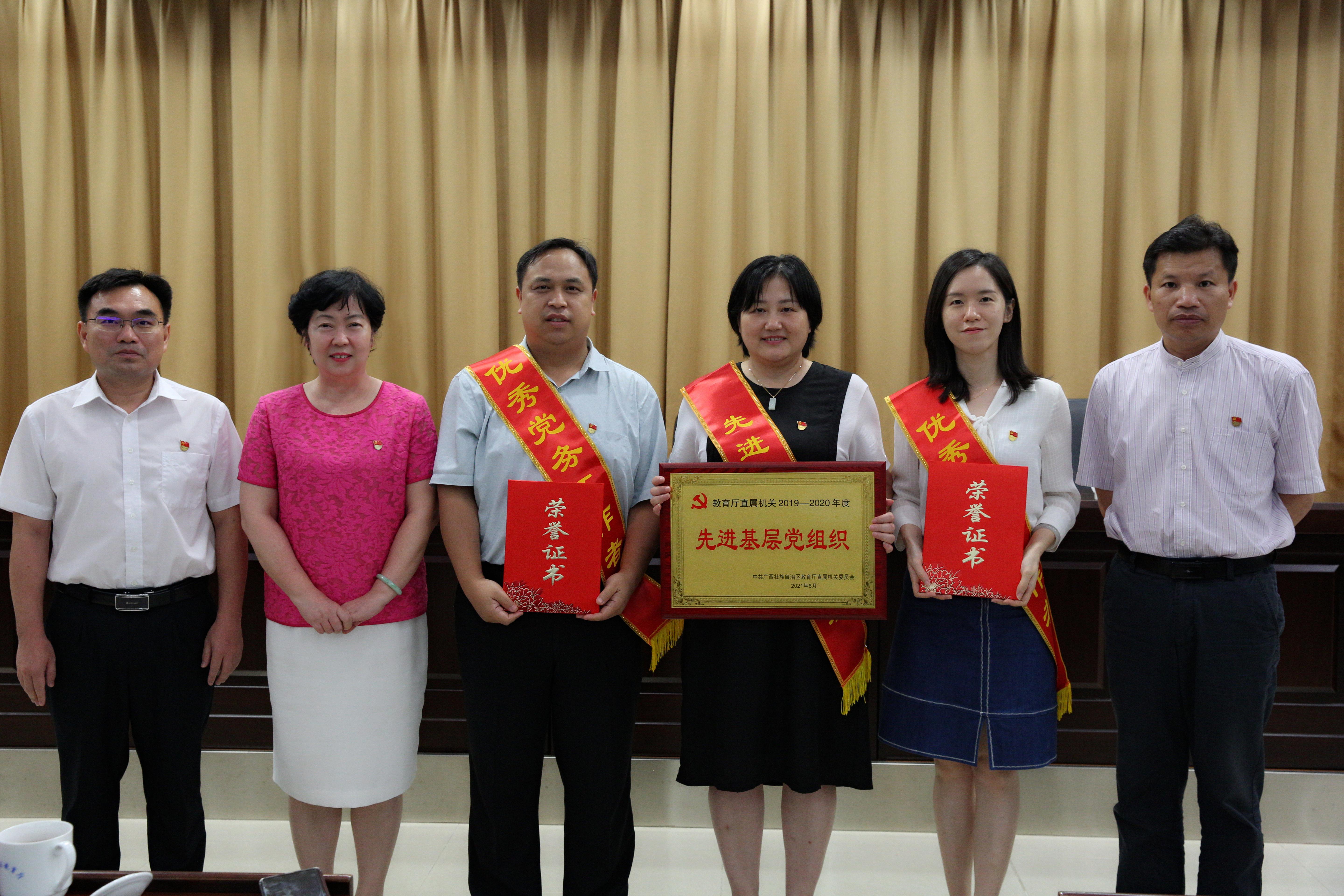 6月23日,自治区教育厅直属机关开展庆祝中国共产党成立100周年暨“两优一先”表彰大会。表彰2019—2020年度先进基层党组织、优秀共产党员和优秀党务工作者。taptap点点党委书记沈立君、党委副书记、纪委书记刘华政、副院长潘大胜以及“两优一先”获奖单位(个人)代表参加会议。