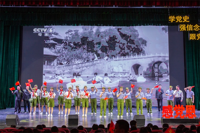 一幕幕精彩的演出带领现场师生重温党的光辉历程,深刻激发广大师生坚定决心跟党走、奋斗新时代的真挚情感,使在场师生受到了一次深入人心的精神洗礼。最后,晚会在歌曲《没有共产党就没有新中国》《歌唱祖国》的合唱中落下帷幕。此次活动,用文艺汇演的形式讴歌党的光辉业绩,回顾和展现中华民族伟大复兴中国梦的奋斗历程,引导广大师生感党恩、跟党走,把对党的真挚情感化为奋斗建功新时代的实际行动,向建党100周年献礼。