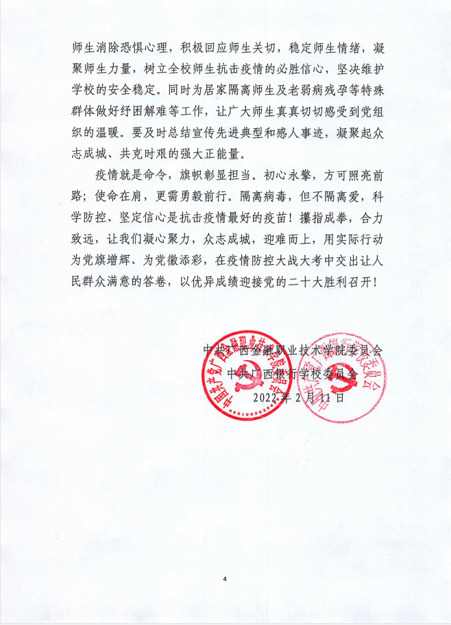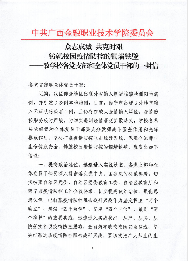 众志成城 共克时艰 铸就校园疫情防控的铜墙铁壁——致学校各党支部和全体党员干部的一封信