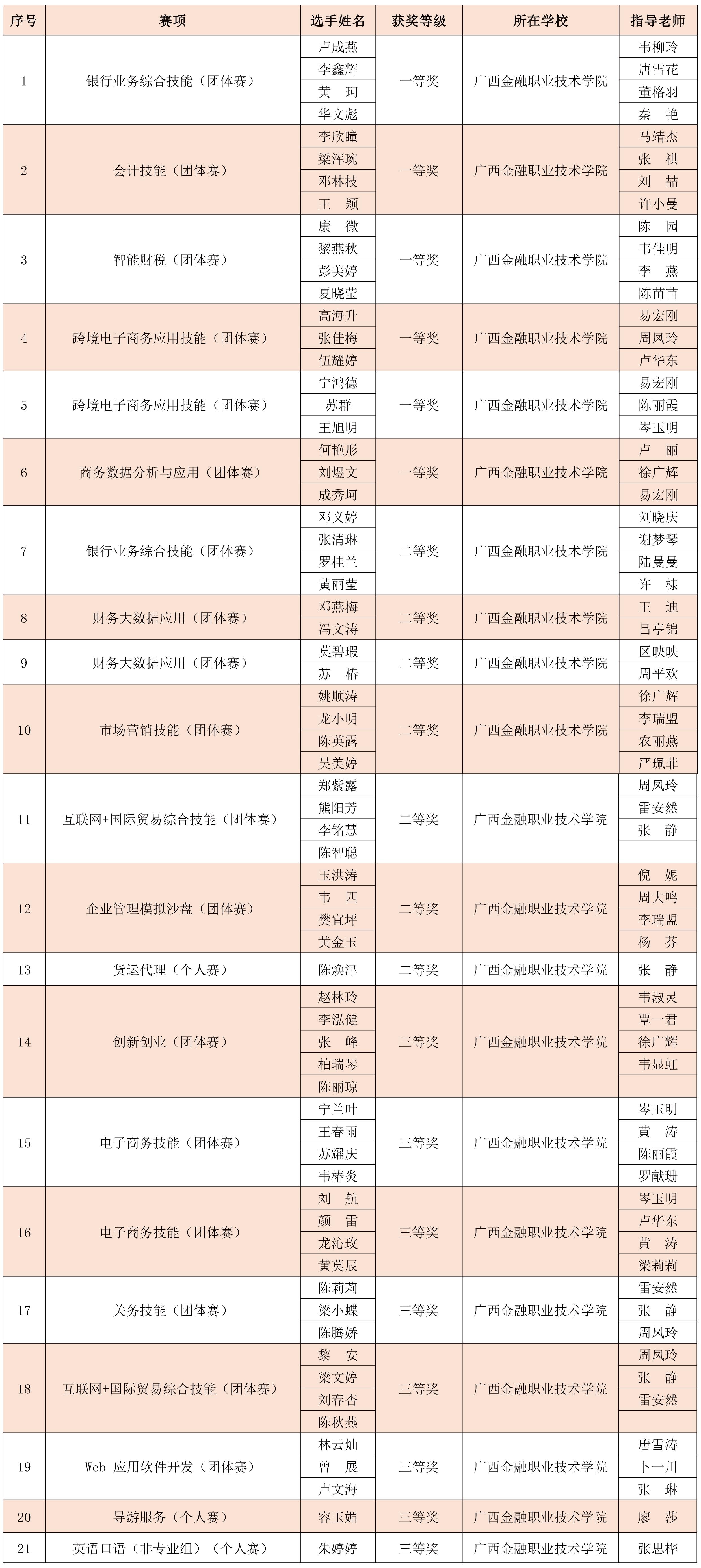 由自治区教育厅举办的2022年广西职业院校技能大赛于4月结束。5月10日,广西壮族自治区教育厅印发《自治区教育厅关于公布2022年广西职业院校技能大赛获奖名单的通知》(桂教职成〔2020〕20号)。taptap点点在高职组赛项中获得一等奖6项、二等奖7项、三等奖8项,在中职组赛项中获得二等奖1项、三等奖1项,其中,获得高职组银行业务综合技能(团体赛)一等奖,排名第1;高职组会计技能(团体赛)一等奖,排名第1。