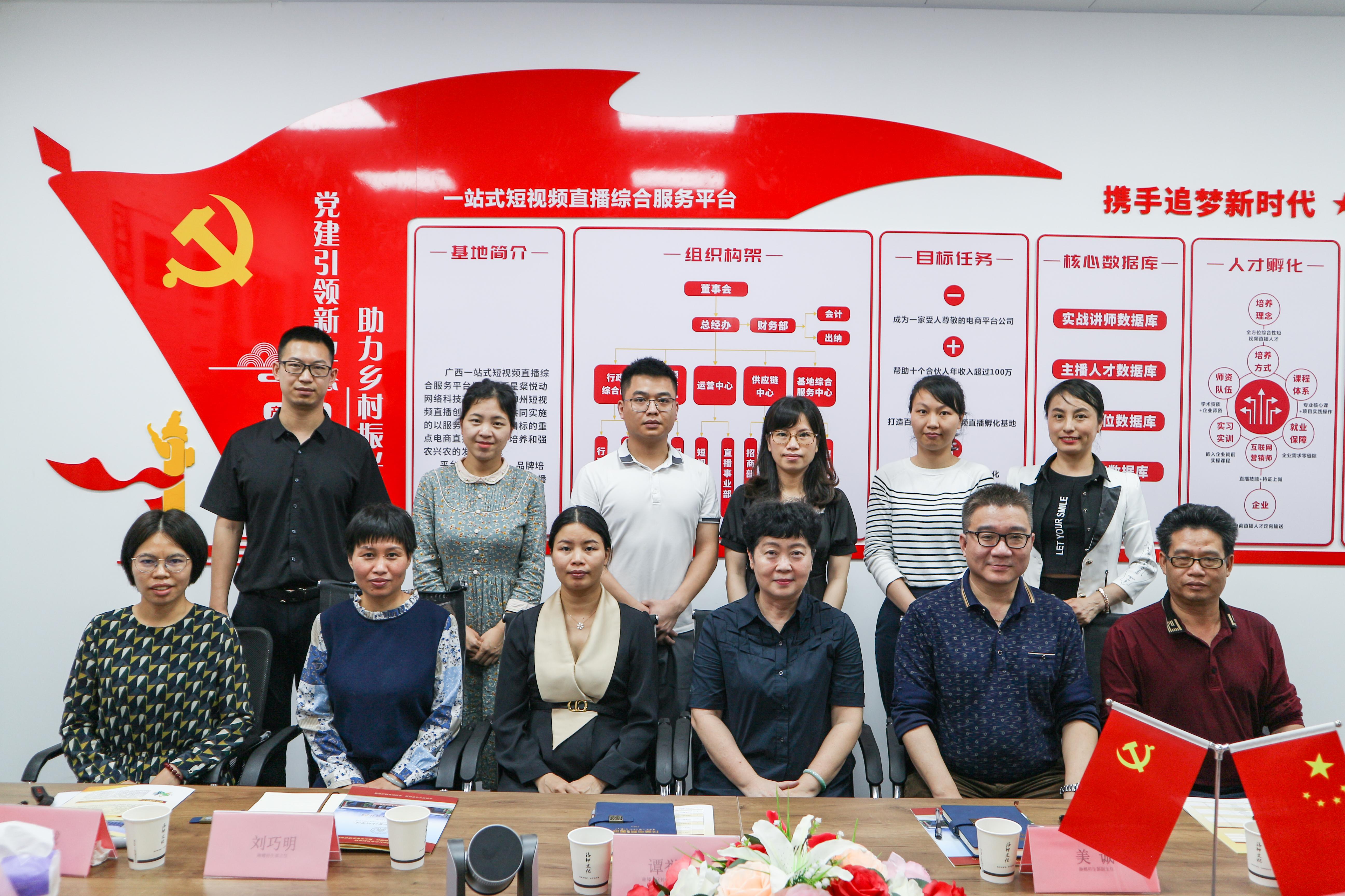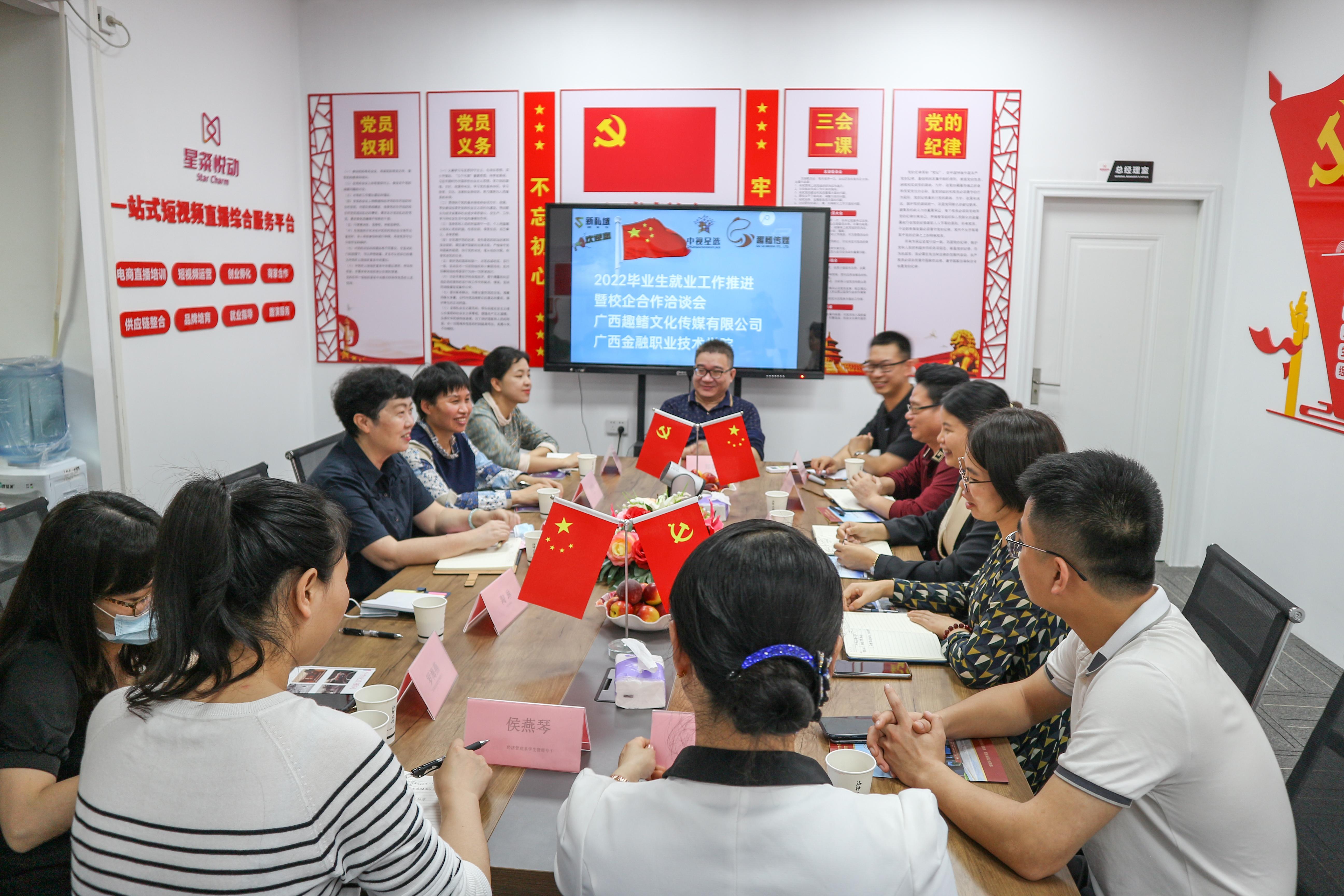 5月25日,党委书记沈立君带队到广西趣鳍文化传媒有限公司开展用人单位实地考察。公司创始人谭誉言、经理刘巧明等公司高层对沈立君一行表示热烈欢迎。