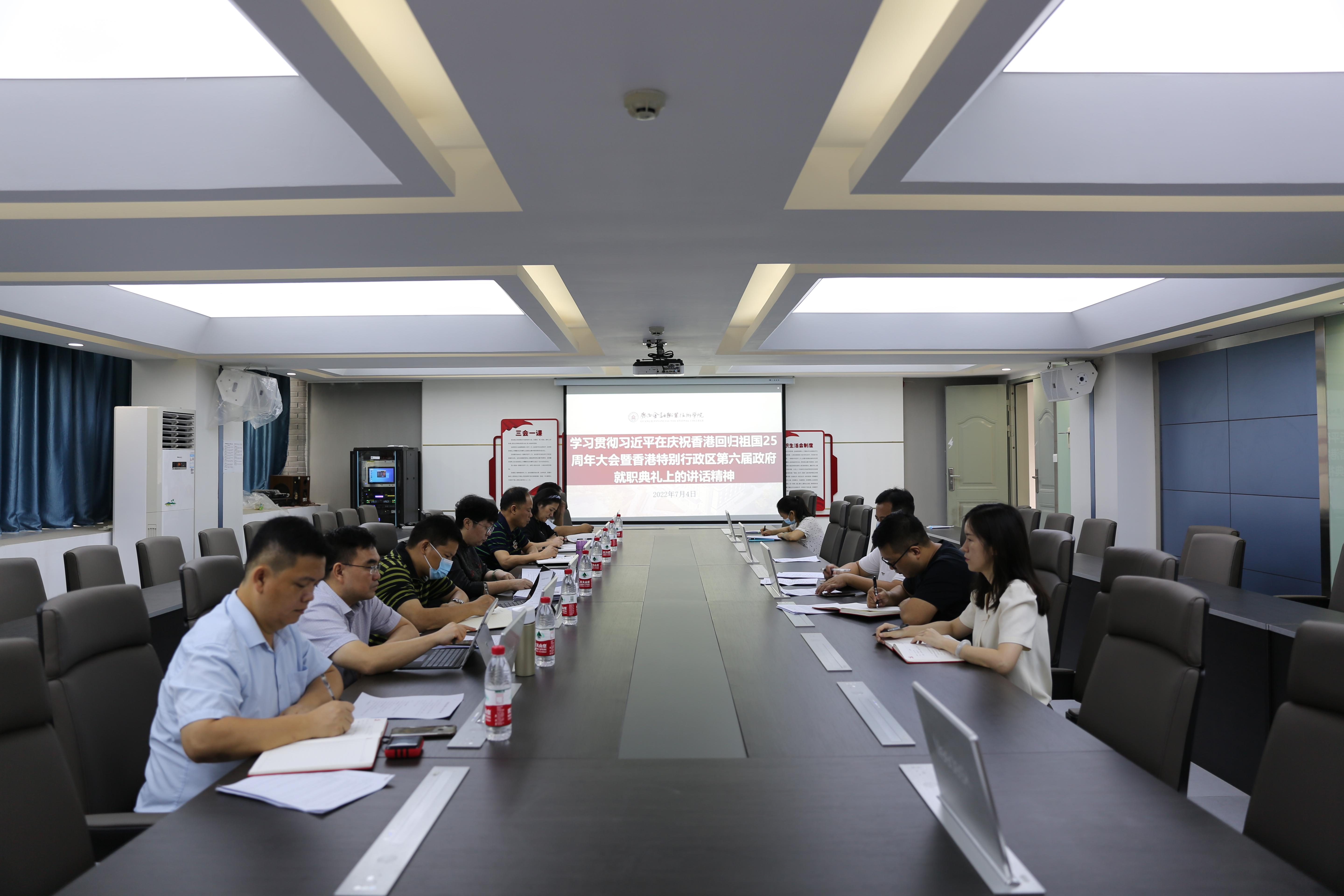 7月4日上午,学校在西校区512会议室召开党委扩大会议,专题学习习近平在庆祝香港回归祖国25周年大会暨香港特别行政区第六届政府就职典礼上的讲话精神。学校领导、党委委员、党委宣传部、组织人事处、纪检监察室相关负责人参加会议。党委书记沈立君主持会议并讲话。