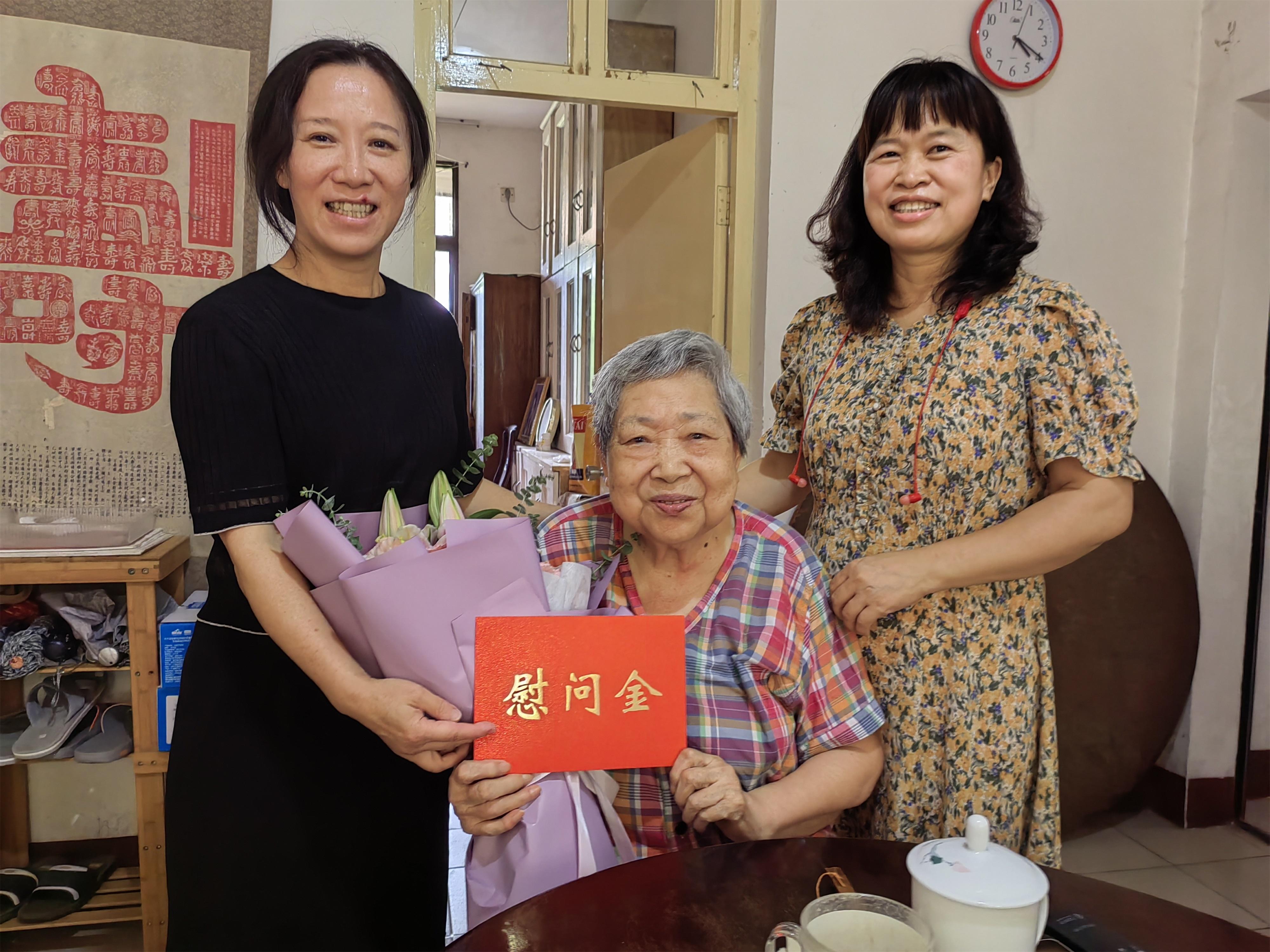 慰问过程中,学校领导向教师们送上节日祝福,并为他们送上了鲜花和慰问金,同时与他们亲切交谈,仔细询问他们的工作、身体、生活和家庭情况,征询他们对学校建设发展的意见和建议。学校领导对教师们多年来为教育事业发展所做出的贡献和对学校建设付出的辛勤努力表示感谢。
