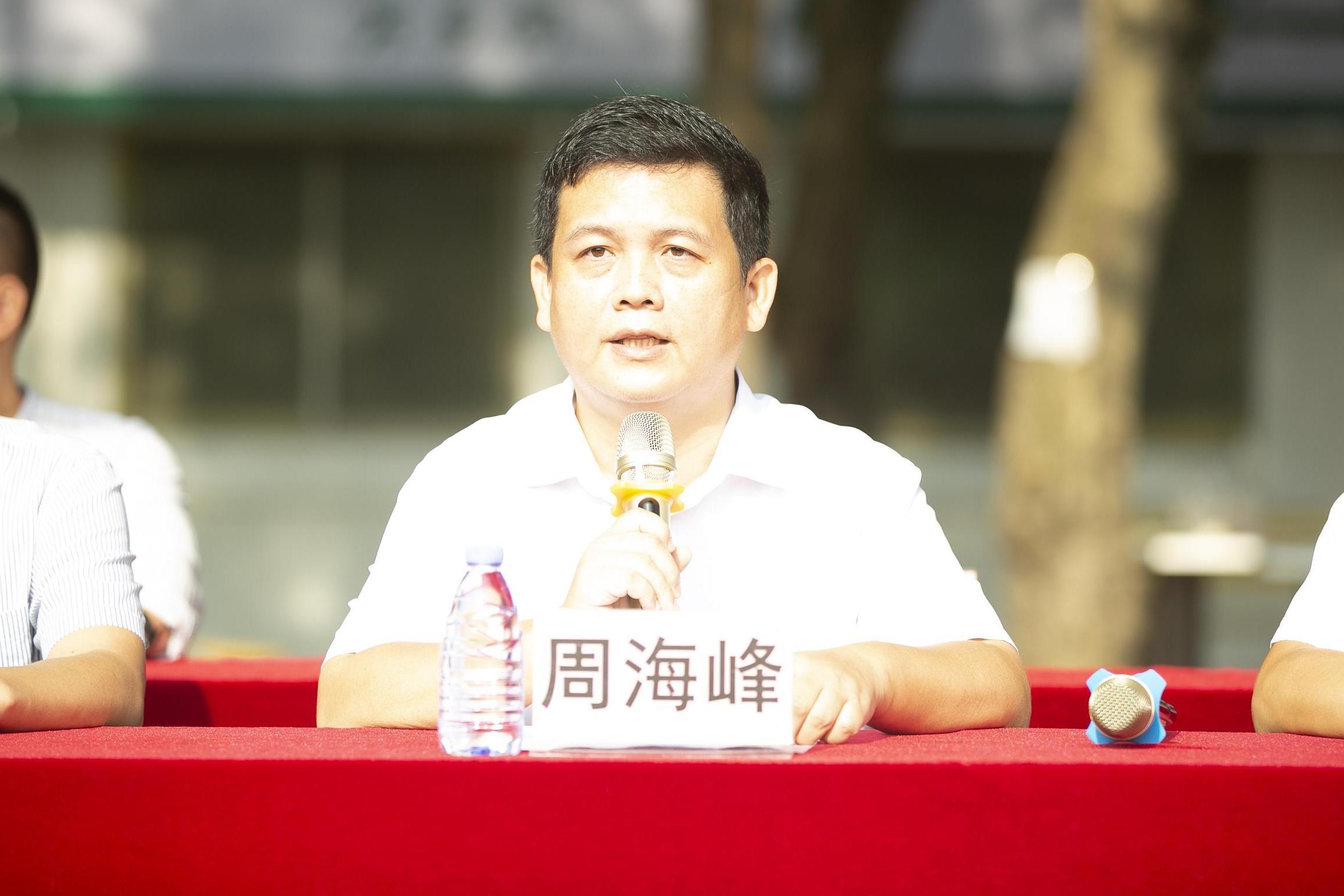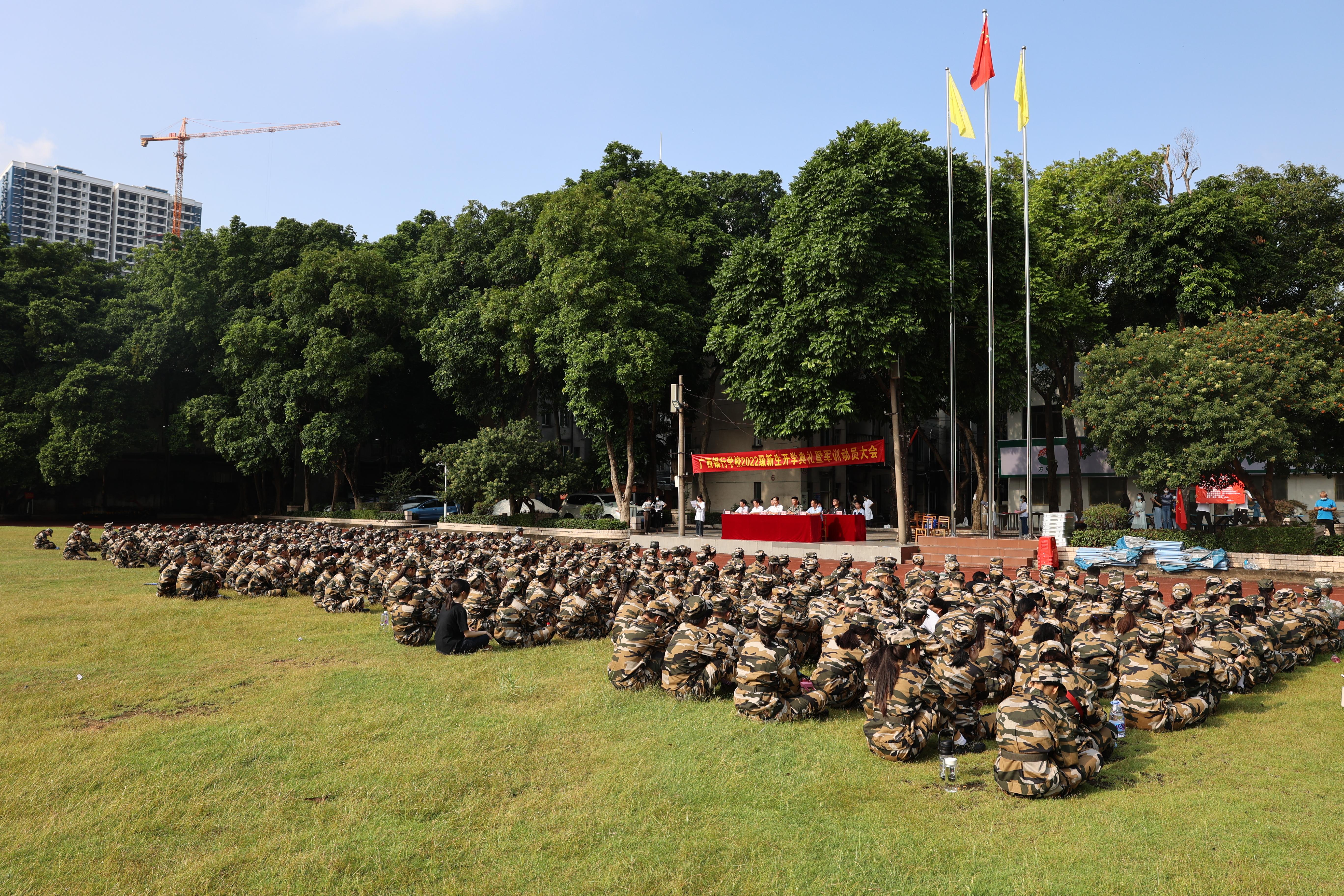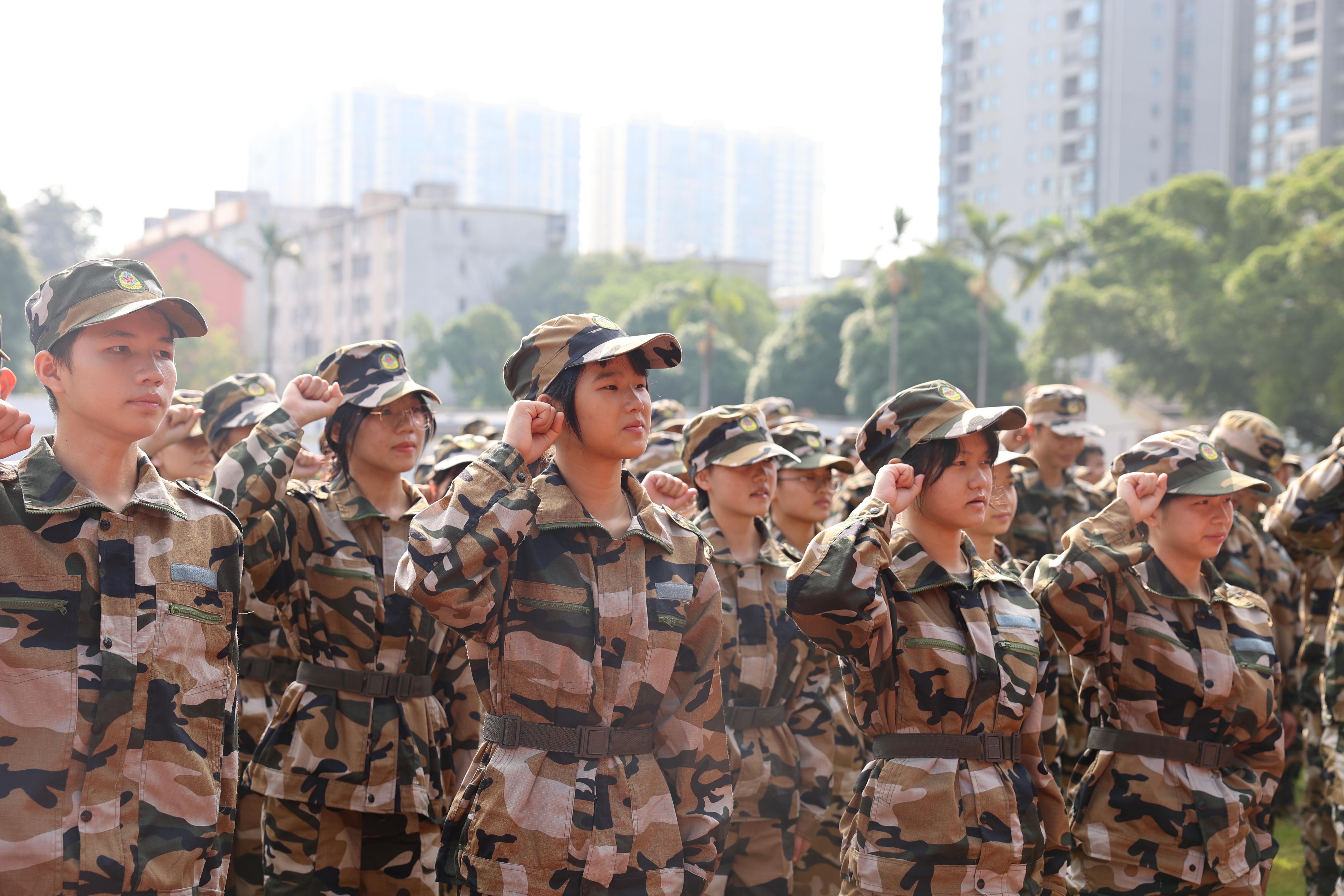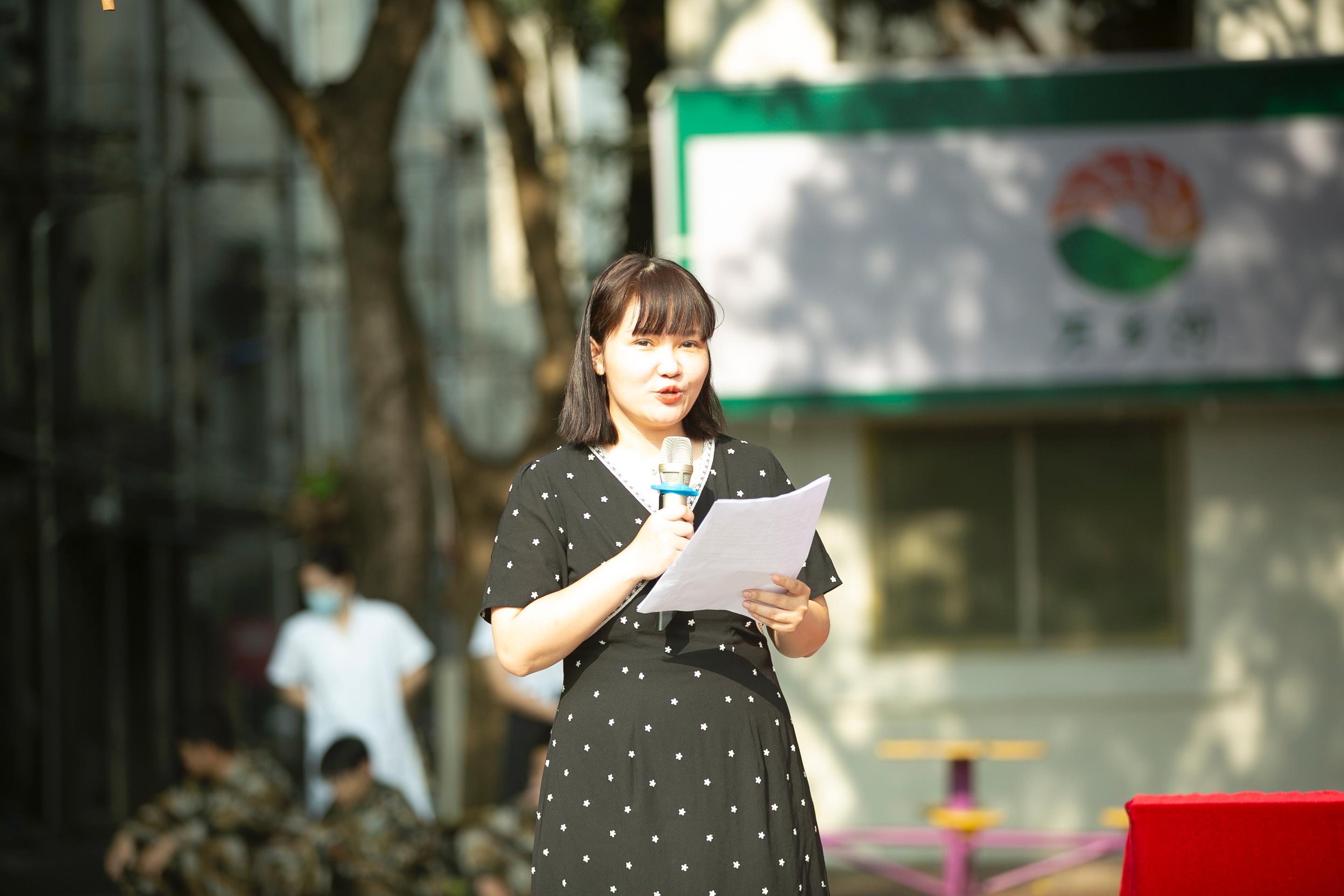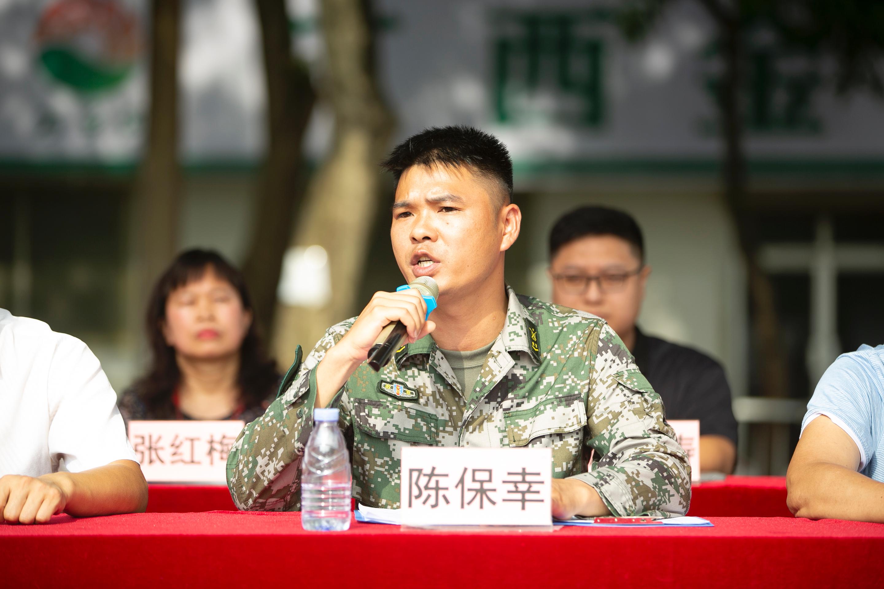 军训单位代表教官领队陈保幸发言,他表示军训期间全体教官将严格执行规章制度、组织训练,时刻保持良好的军人姿态,言传身教,以身作则,以实际行动引领学员,确保军训任务高标准、高质量圆满完成。