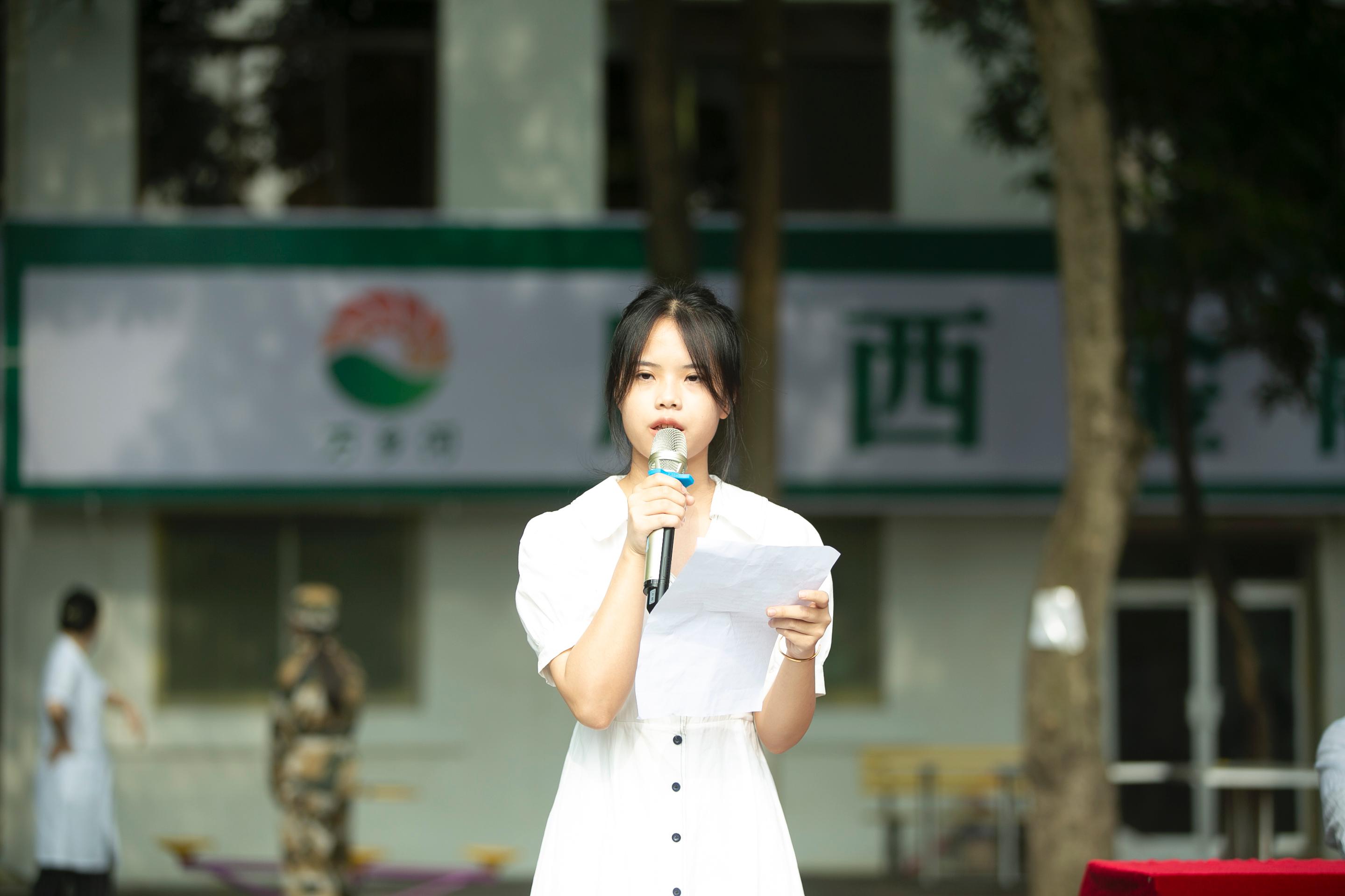 张春岑同学作为新生代表发言,她感激学校、老师们的亲切关怀以及学姐、学长们的热情帮助,同时表示在未来的三年中努力学习,砥砺前行,争做可堪大任的时代新人。