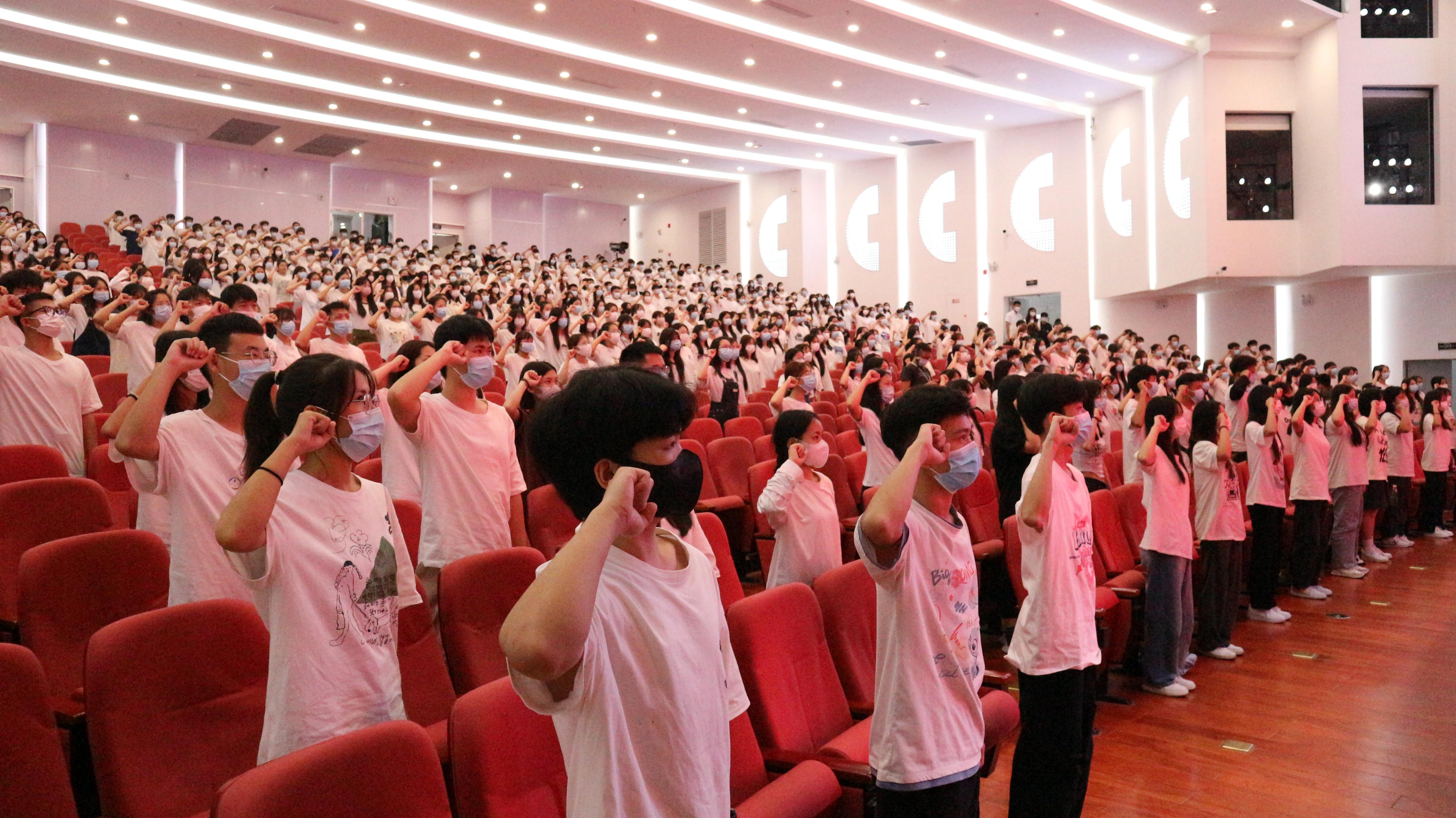 老生代表带领全体新同学宣读《入学誓词》,开学典礼在全体新同学声声誓言中圆满结束。