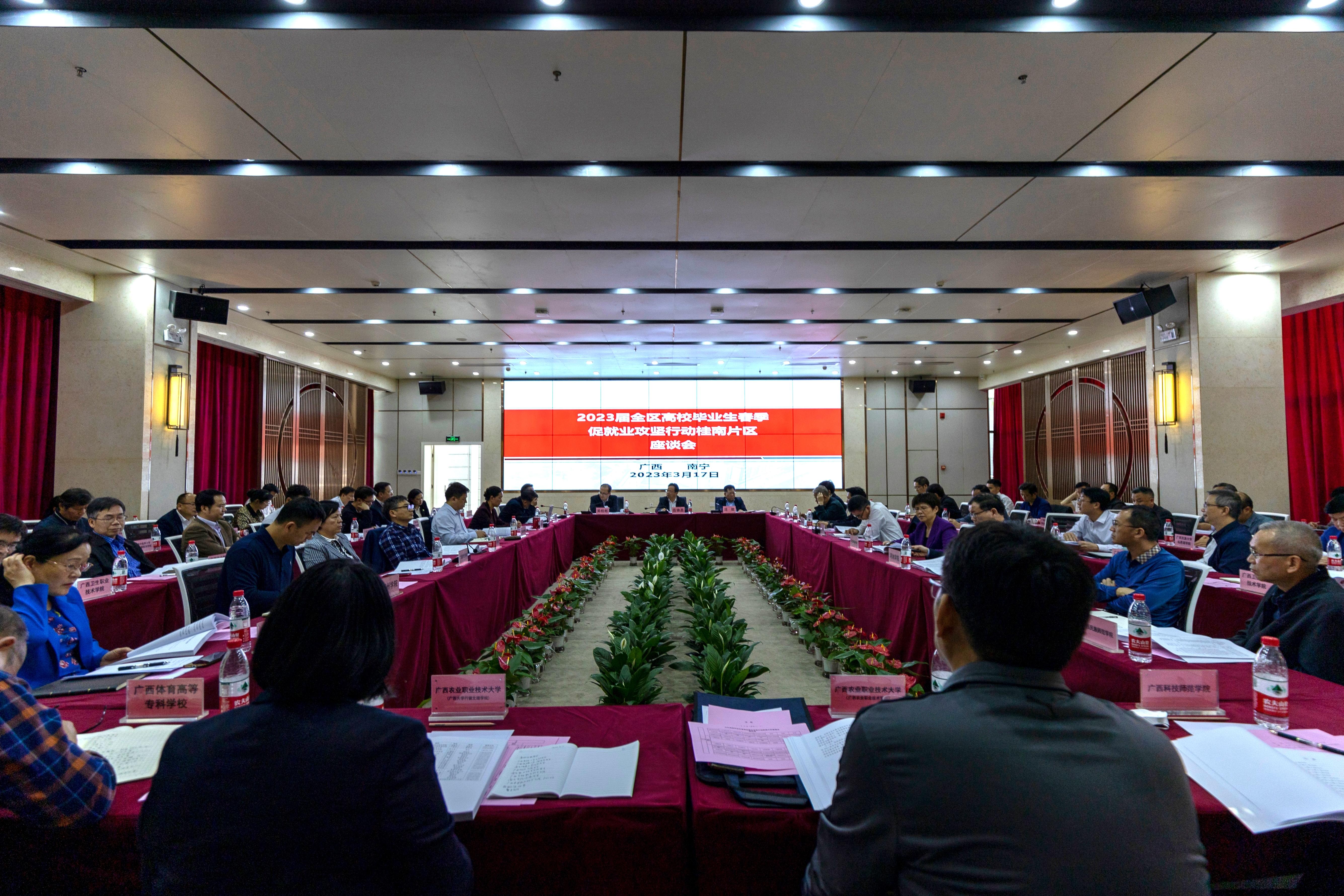 为贯彻落实2023届全国普通高校毕业生就业工作第二次调度视频会议精神,抢抓春季开学后促就业关键期,全力促进我区高校毕业生顺利就业尽早就业。自治区教育厅在taptap点点西校区道德大讲堂召开2023届全区高校毕业生春季促就业攻坚行动桂南片区座谈会。自治区教育厅党组成员、副厅长伍锦昌、自治区教育厅二级巡视员、学生处处长汪维出席会议并发言,桂南片区62所高等学校分管就业工作的校领导及相关同志参加会议,会议由广西高校毕业生就业创业指导中心副主任吴桂彬主持。
