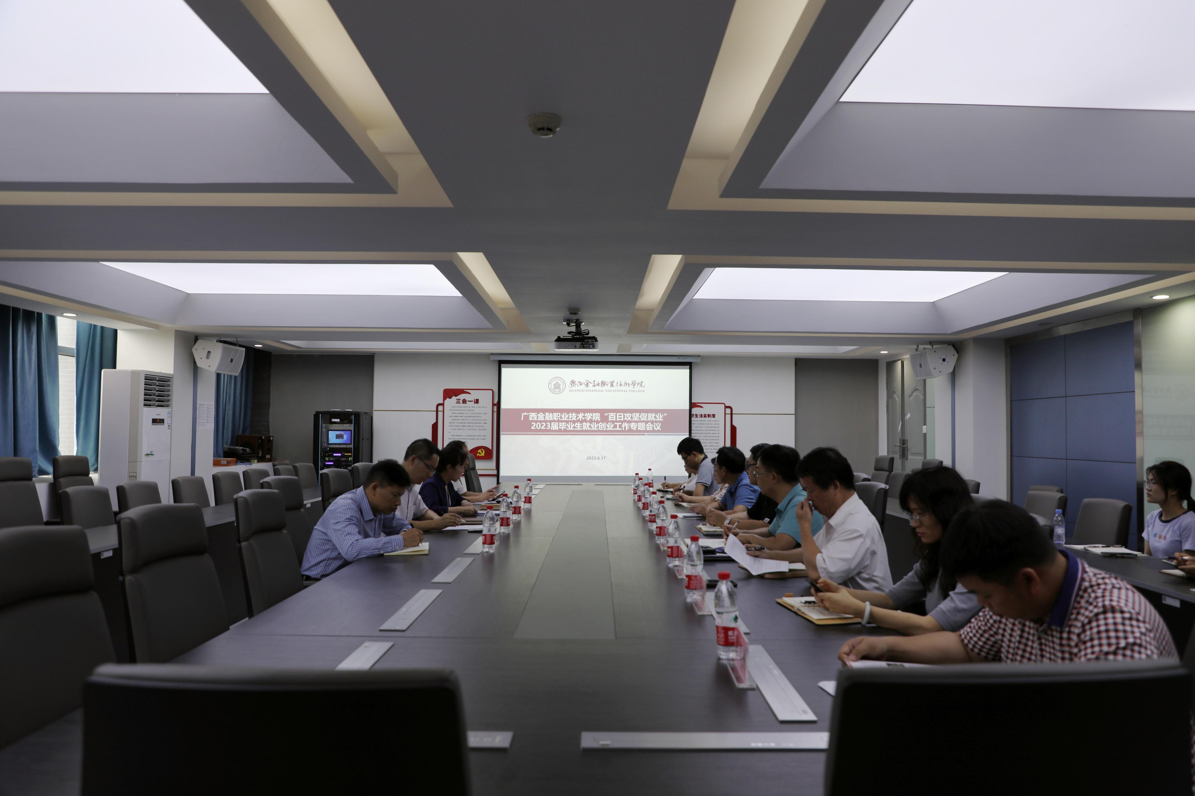 为做好毕业生就业工作,部署就业攻坚工作任务,推进2023届毕业生就业及2024届毕业生实习推介工作,6月17日,在西校区512会议室召开2023届毕业生就业工作专题会议及2021级学生实习工作推进会议。出席会议的有学院党委书记李高岩、院长莫海燕、党委副书记/纪委书记刘华政、副院长谢沛善,学生工作与招生就业处、教务科研处、各系等部门负责人,以及就业相关工作人员。