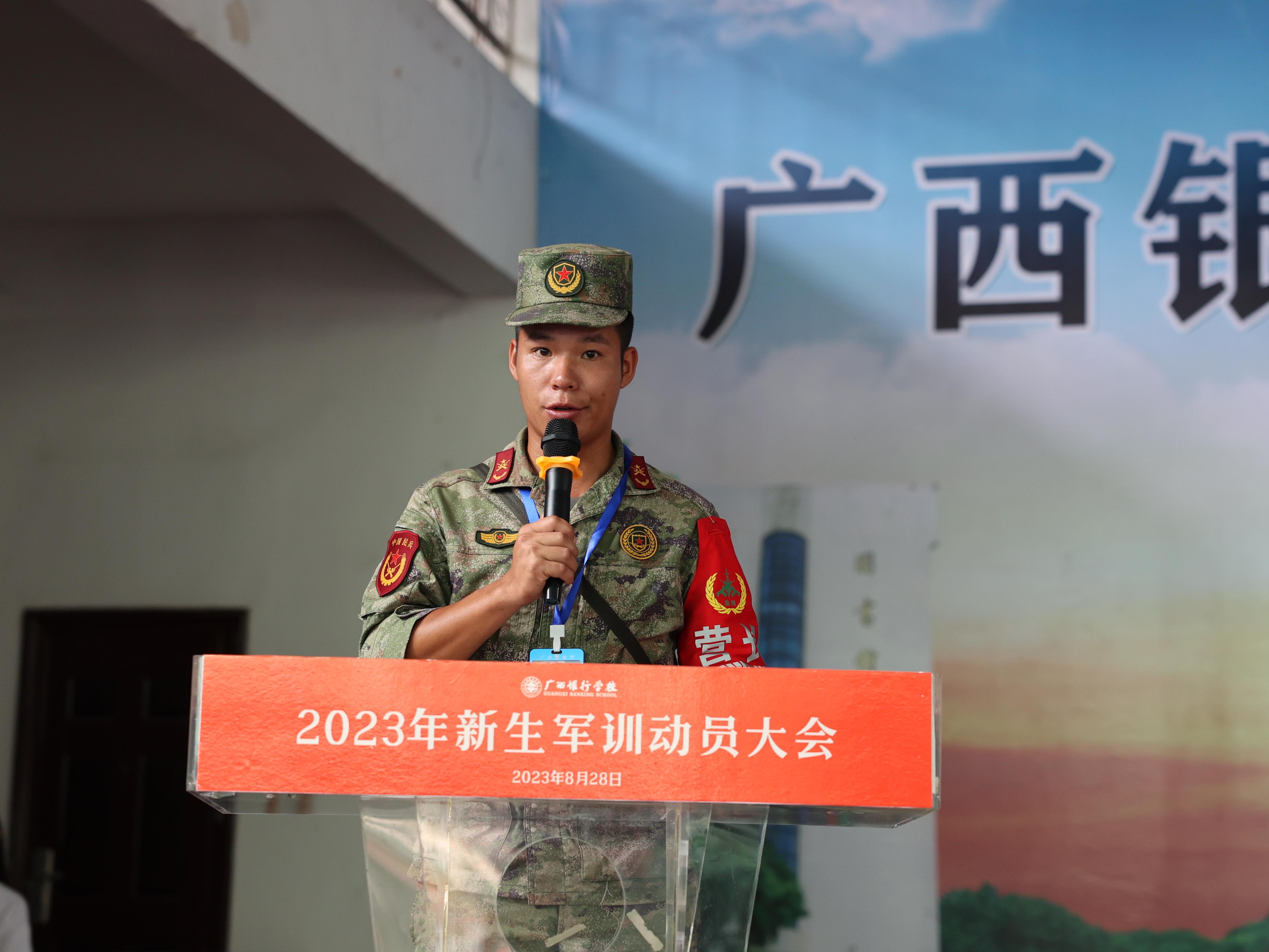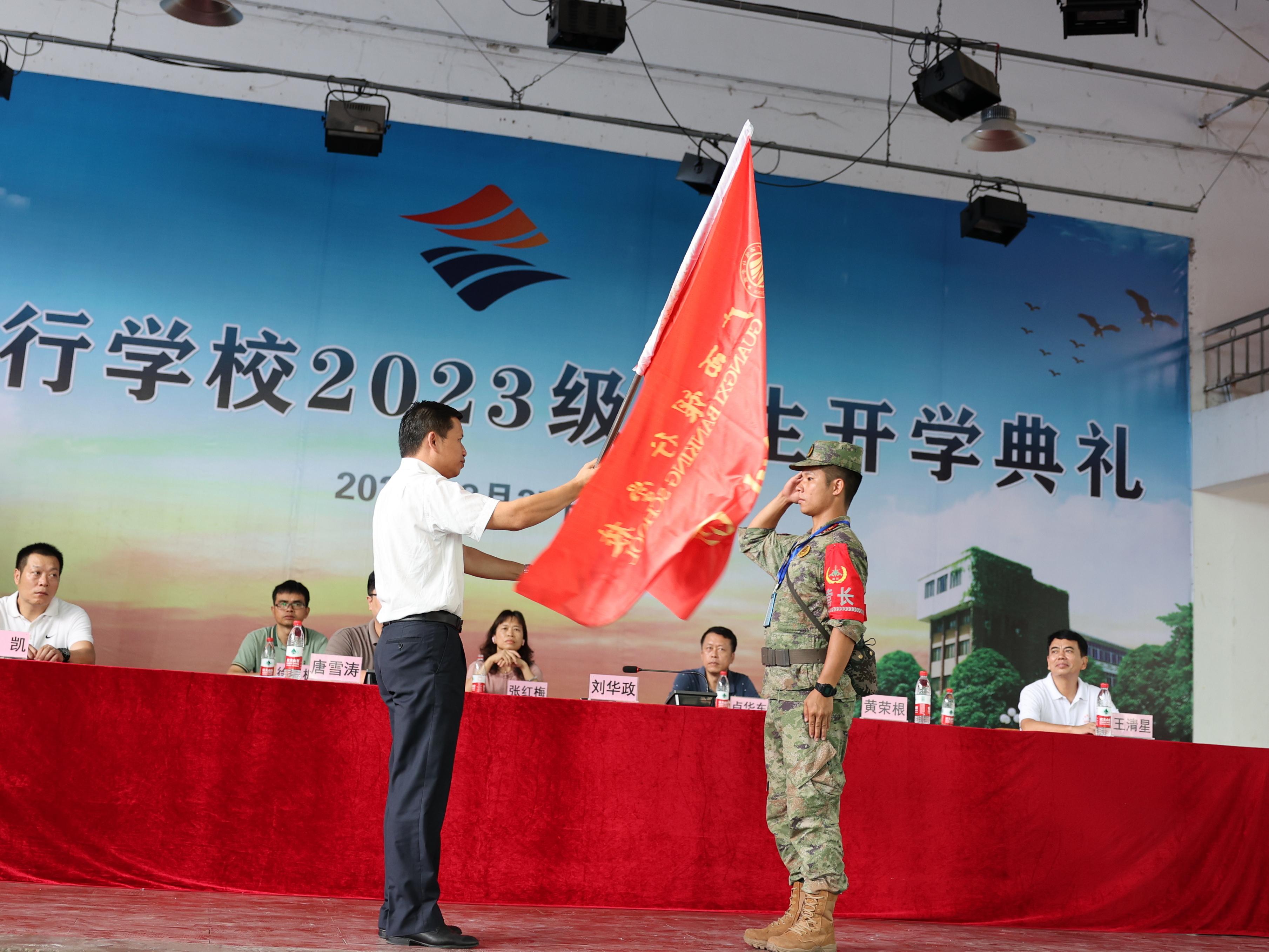 8月28日上午,广西银行学校2023级学生军训动员大会在东校区大礼堂举行,全体教官及参训学生参加大会。学校党委副书记刘华政作军训动员讲话并向军训团团长授旗,各二级学院主要负责人出席大会,动员大会由学生工作与招生就业处副处长唐雪涛主持。