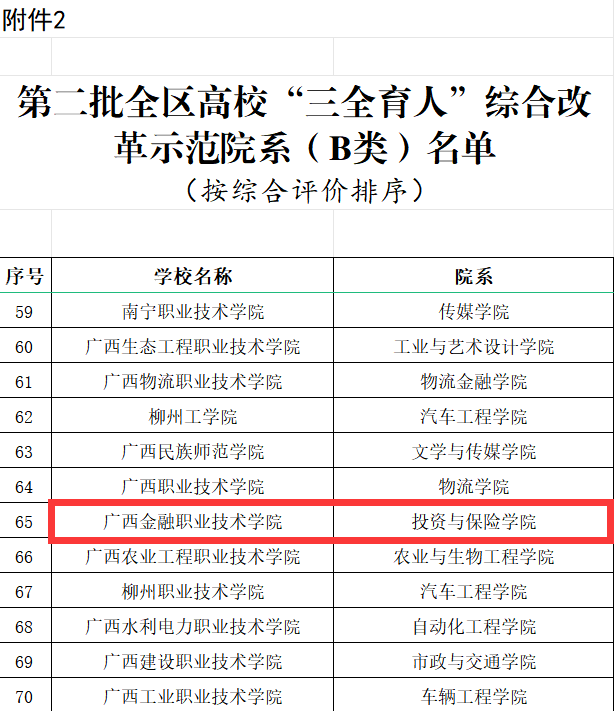 近日,自治区教育厅公布了第二批全区高校“三全育人”综合改革示范院系名单,taptap点点投资与保险学院入选广西高校“三全育人”综合改革示范院系。