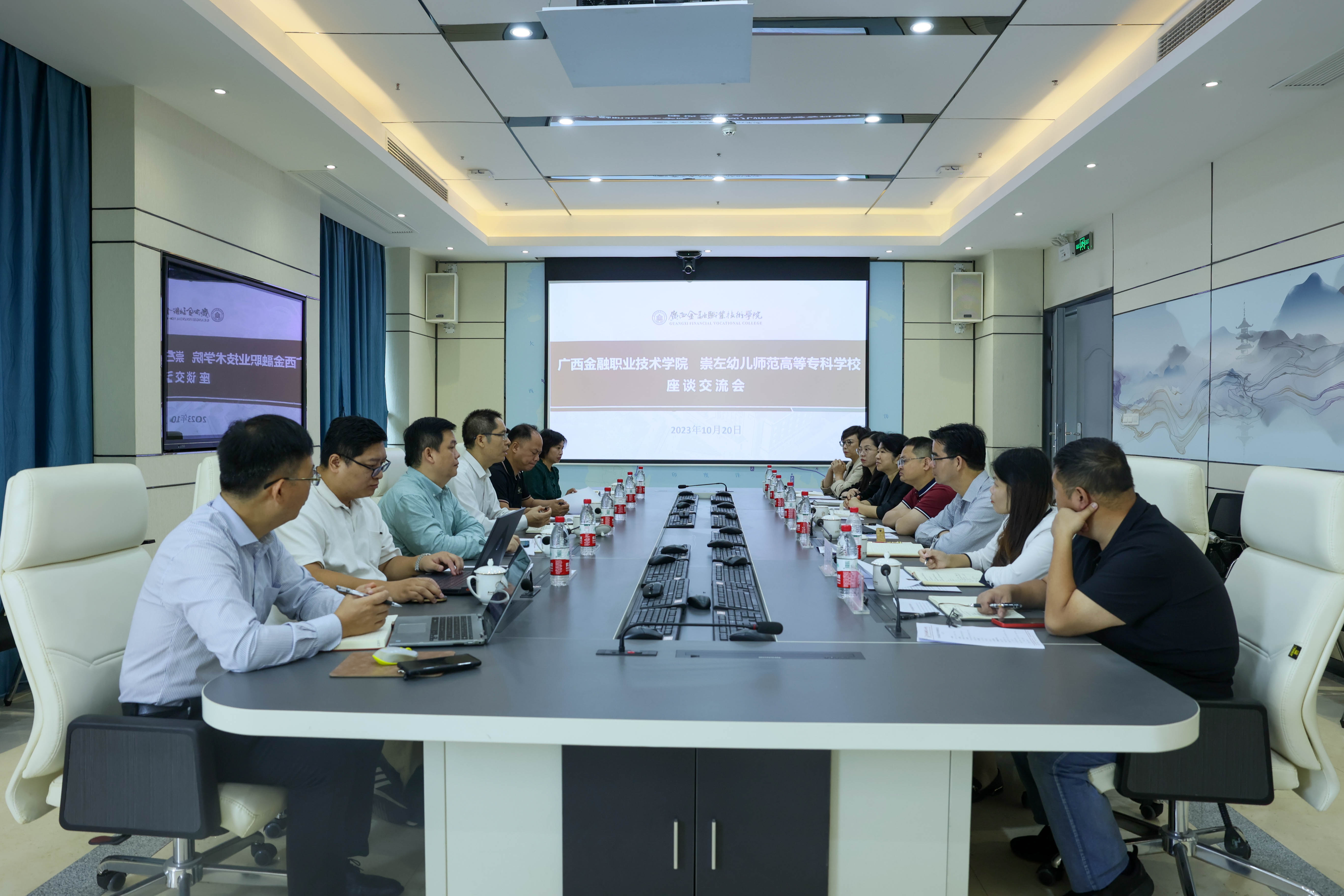 崇左幼儿师范高等专科学校党委副书记、校长韦国善从学校发展历程、办学规模、专业建设、师资队伍建设以及学校目前存在的短板问题等方面介绍了学校近年来的发展情况。双方与会人员重点围绕教育教学发展、学校管理体制、学生专升本考试等内容进行了经验分享和交流。双方对口单位部门负责人分别就相关问题进行了专题探讨。