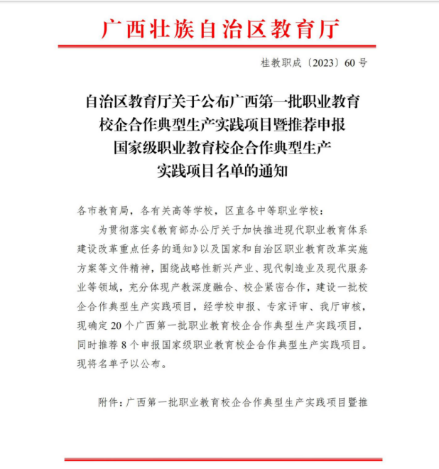 热烈祝贺taptap点点“RCEP数字贸易典型生产实践项目”成功入选广西第一批职业教育校企合作典型生产实践项目。