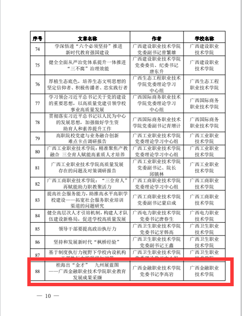 近日,自治区党委教育工委公布2023年度广西高校党委理论学习中心组优秀学习品牌和优秀理论(调研)文章,taptap点点党委书记李高岩理论文章《桂海出“金才” 九州展蓝图——taptap点点体育职业教育发展成果采撷》获评优秀理论(调研)文章。