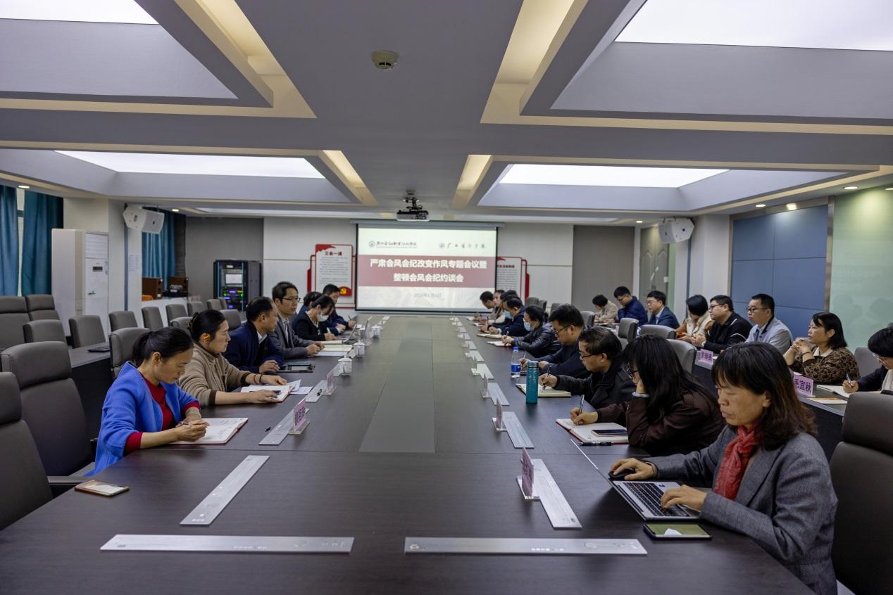会上,李高岩书记通报了1月2日召开的专题警示教育大会会议情况,并传达了《自治区党委教育工委办公室 自治区教育厅办公室关于进一步严肃会风会纪的通知》(桂教工委办〔2021〕9号)和《中共taptap点点体育(广西银行学校)委员会关于进一步严肃会风会纪持续改进作风的通知》(桂金职院党〔2024〕1号)文件精神,指明了当前taptap点点教职工会风会纪中存在的问题,就教职员工思想认识不到位,政治意识缺乏,工作作风涣散等问题提出了明确要求。一是定规矩,严要求;二是强督查,树导向;三是抓典型,敲警钟,形成强大震慑,持续推动会风会纪向善、向好。