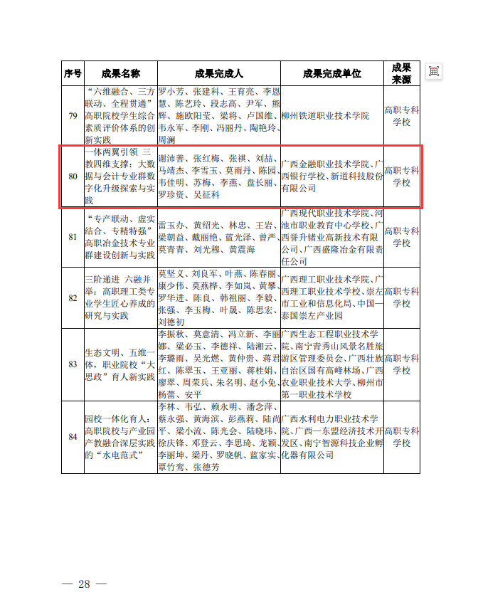 近日,自治区教育厅、自治区人力资源社会保障厅公布2023年广西职业教育自治区级教学成果等次评定结果,taptap点点教学成果《一体两翼引领 三教四维支撑:大数据与会计专业群数字化升级探索与实践》获自治区级教学成果奖二等奖。