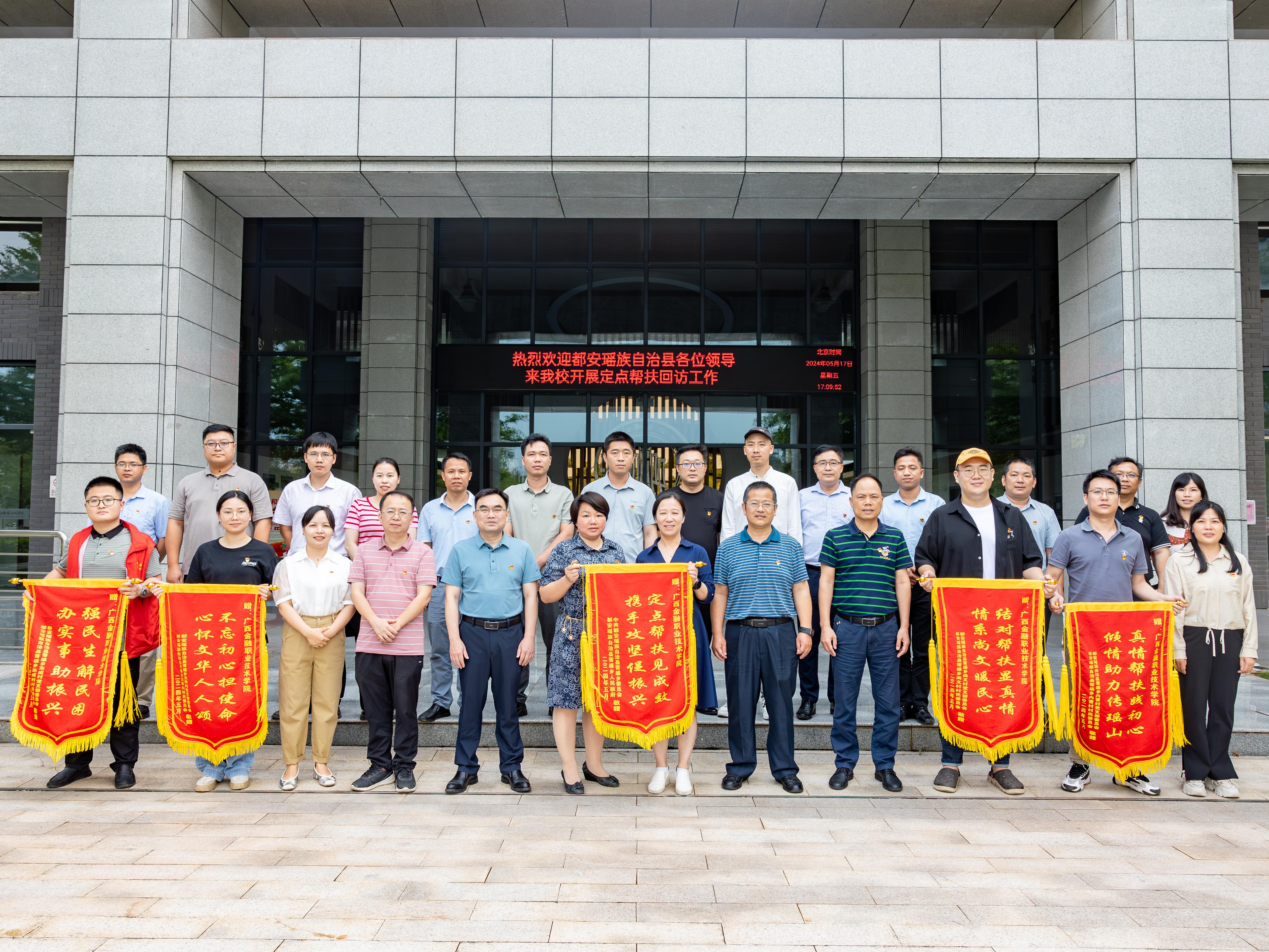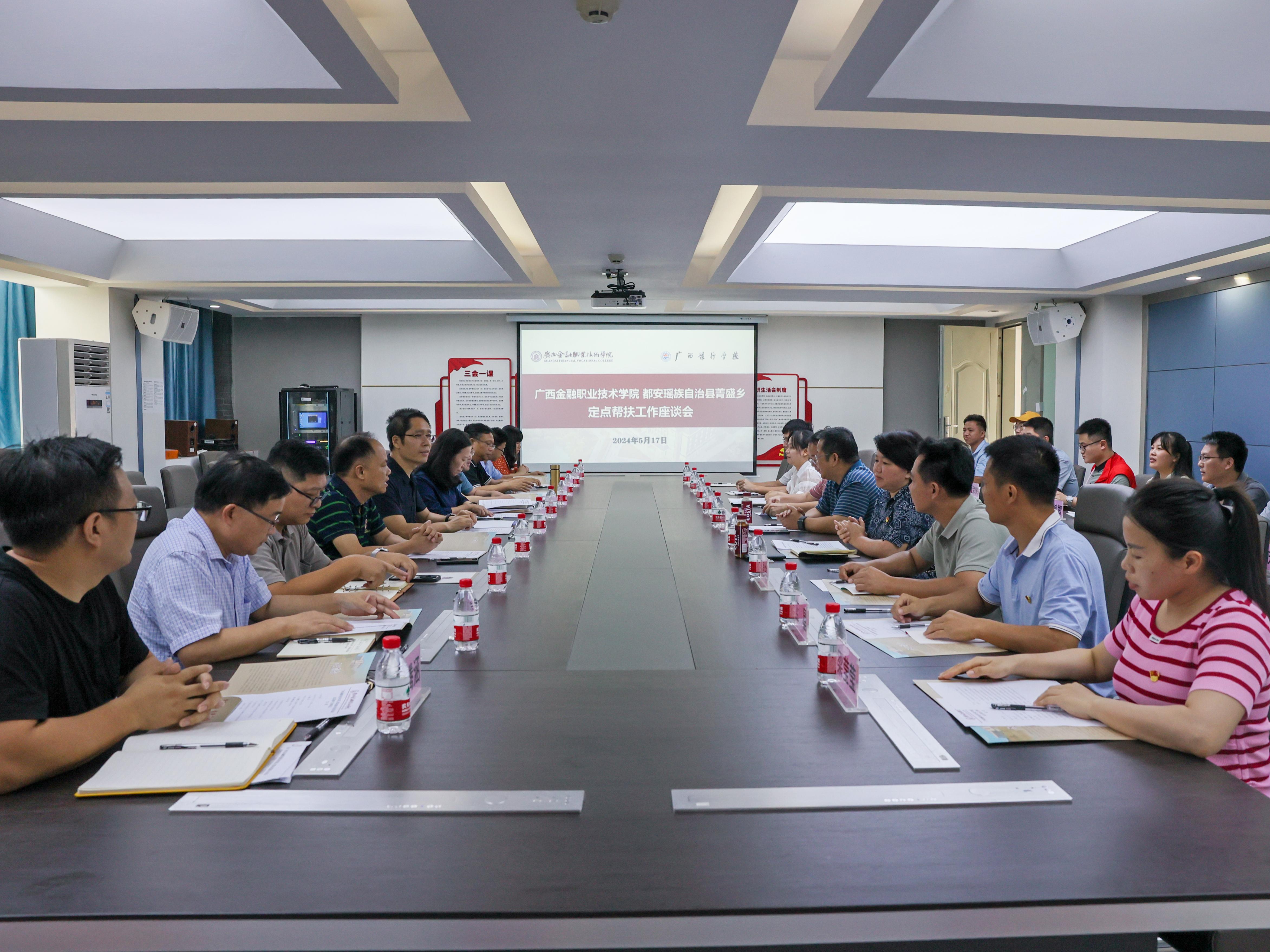 5月17日下午,由都安瑶族自治县人大常委会党组成员、副主任潘莹宇带队的菁盛乡三家班子领导部分成员、定点帮扶村村主任等一行15人到taptap点点开展定点帮扶回访活动。taptap点点党委书记李高岩、校长莫海燕、副校长谢沛善、潘大胜以及校党委组织部、党委学生工作部、招生就业处、财务处、工会、文化与旅游学院、信息技术学院等部门相关人员参加了本次回访座谈会,座谈会由校长莫海燕主持。