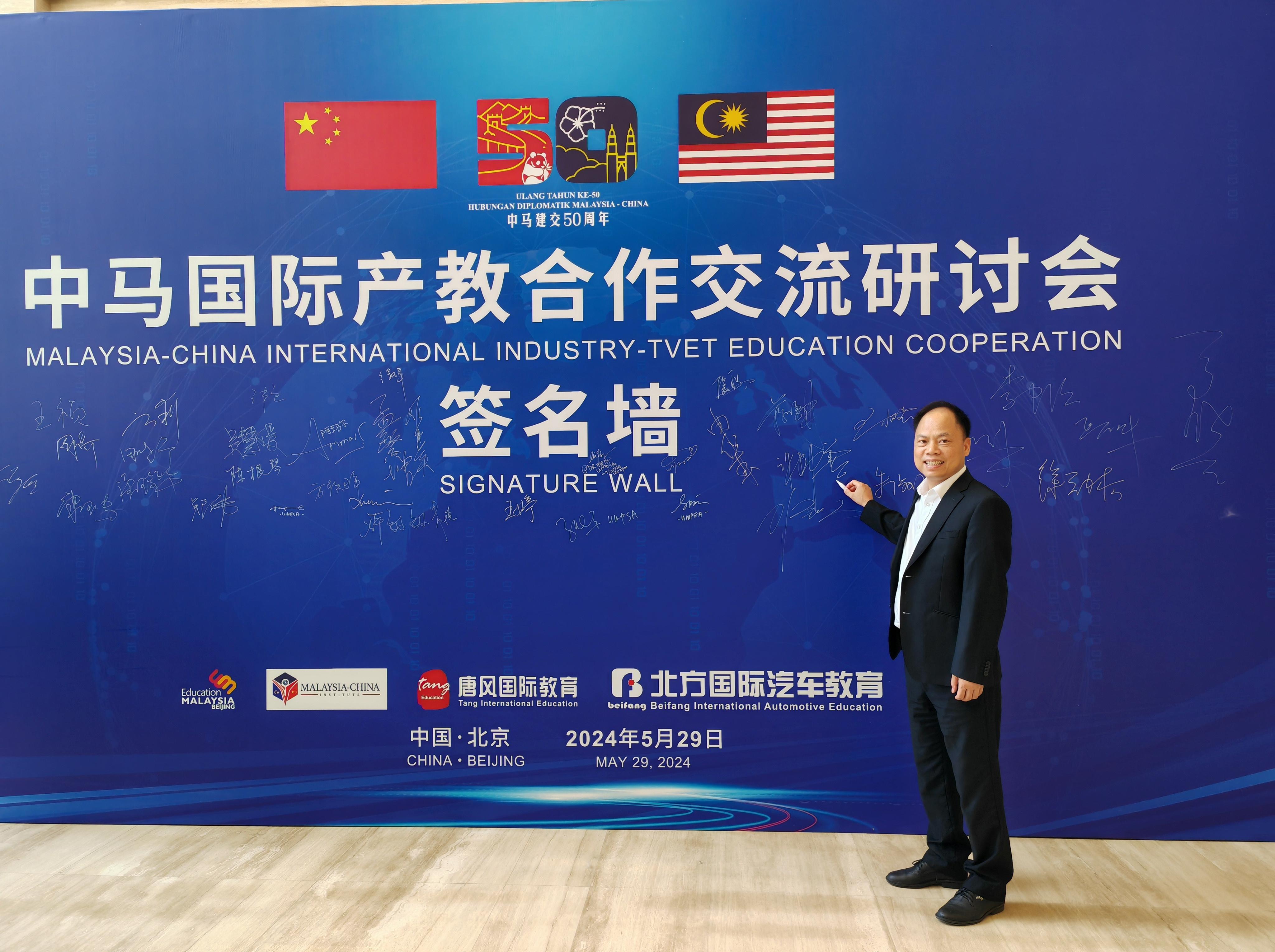 5月29日,中马国际产教合作交流研讨会在北京召开,马来西亚第一副总理扎希德、马来西亚驻北京大使诺曼、马来西亚副外交部长莫哈末·阿拉敏、中马产教国际合作中心理事会主席、国会议员曼兹里·纳昔、马来西亚全国职业工友会秘书长李占·哈山以及马来西亚30所大学和150余所中国大学、10余所企业和协会代表出席本次大会。taptap点点副校长谢沛善、合作与交流中心主任韦施羽等同志代表学校参加本次会议。