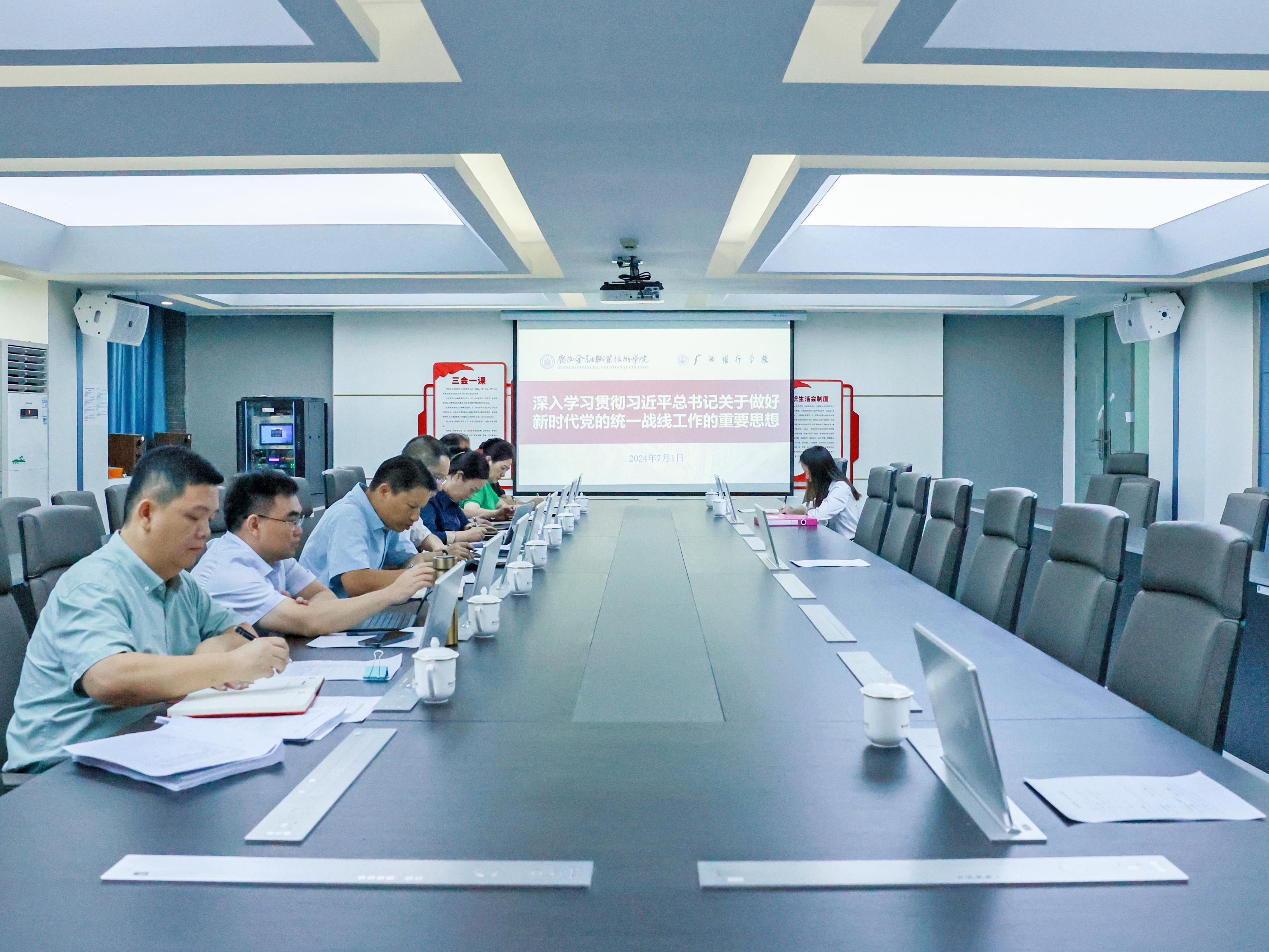 7月1日上午,taptap点点在西校区512会议室召开党委扩大会议,学习贯彻习近平总书记关于做好新时代党的统一战线工作的重要思想。学校领导、党委委员、党委宣传部、组织人事处主要负责人及纪检监察室工作人员参加会议。党委书记李高岩主持会议并讲话。