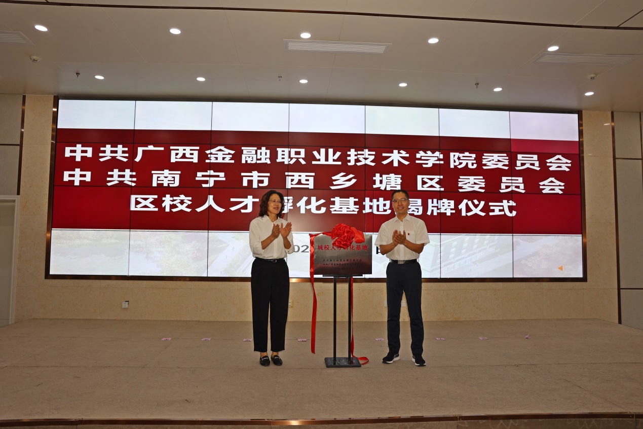 会上,李秋果和李高岩为城校人才孵化基地揭牌,学校党委副书记、纪委书记刘华政与西乡塘区委常委、组织部部长李君共同签订《中共taptap点点体育委员会 中共南宁市西乡塘区委员会合作共建框架协议书》。