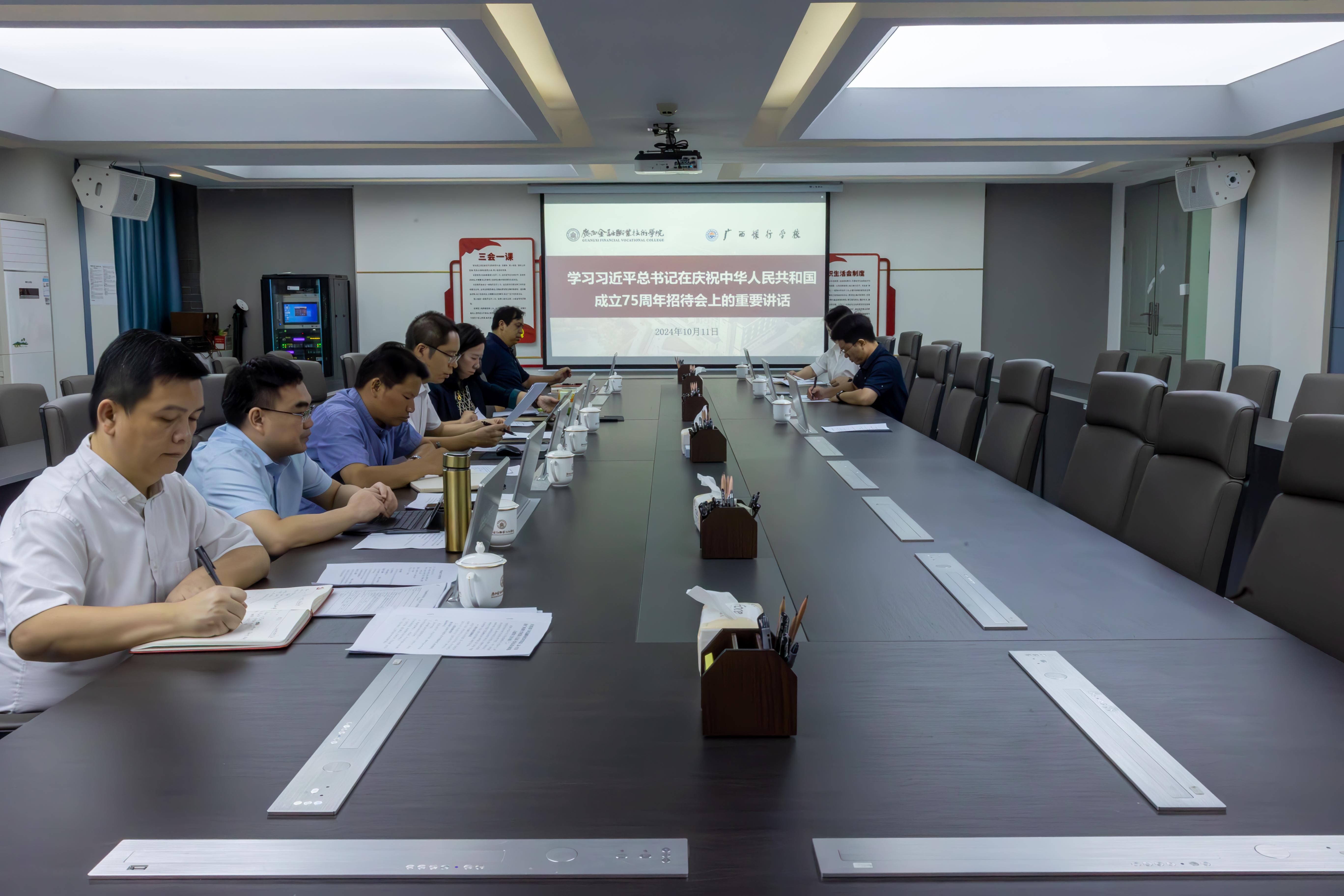 10月11日上午,taptap点点在西校区512会议召开党委扩大会议,专题学习习近平总书记在庆祝中华人民共和国成立75周年招待会上的重要讲话。学校领导、党委委员、党政办公室、组织人事处、纪检监察室主要负责人参加会议。党委书记李高岩主持会议并讲话。
