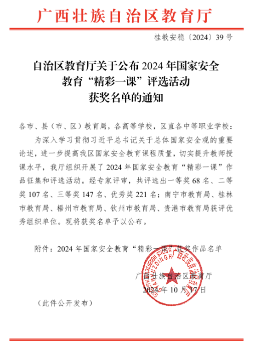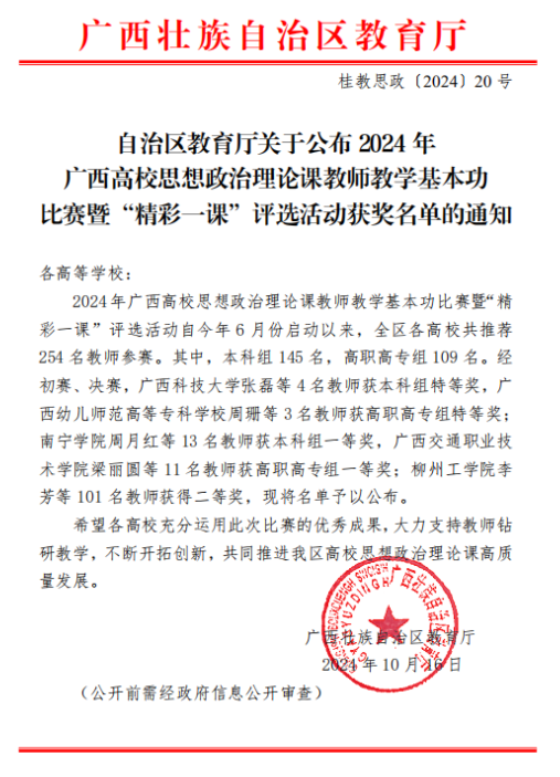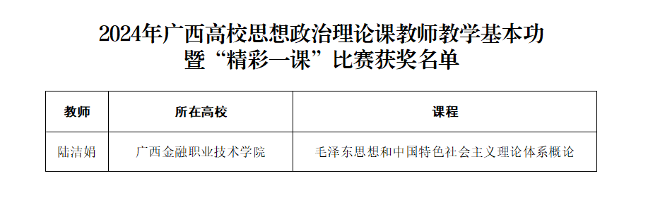 近日,根据广西壮族自治区教育厅公布的2024年全区国家安全教育“精彩一课”评选活动获奖名单、2024年广西高校思想政治理论课教师教学基本功比赛暨“精彩一课”评选活动获奖名单,taptap点点马克思主义学院参赛教师喜获佳绩,分别荣获一等奖一项、二等奖三项、三等奖两项。