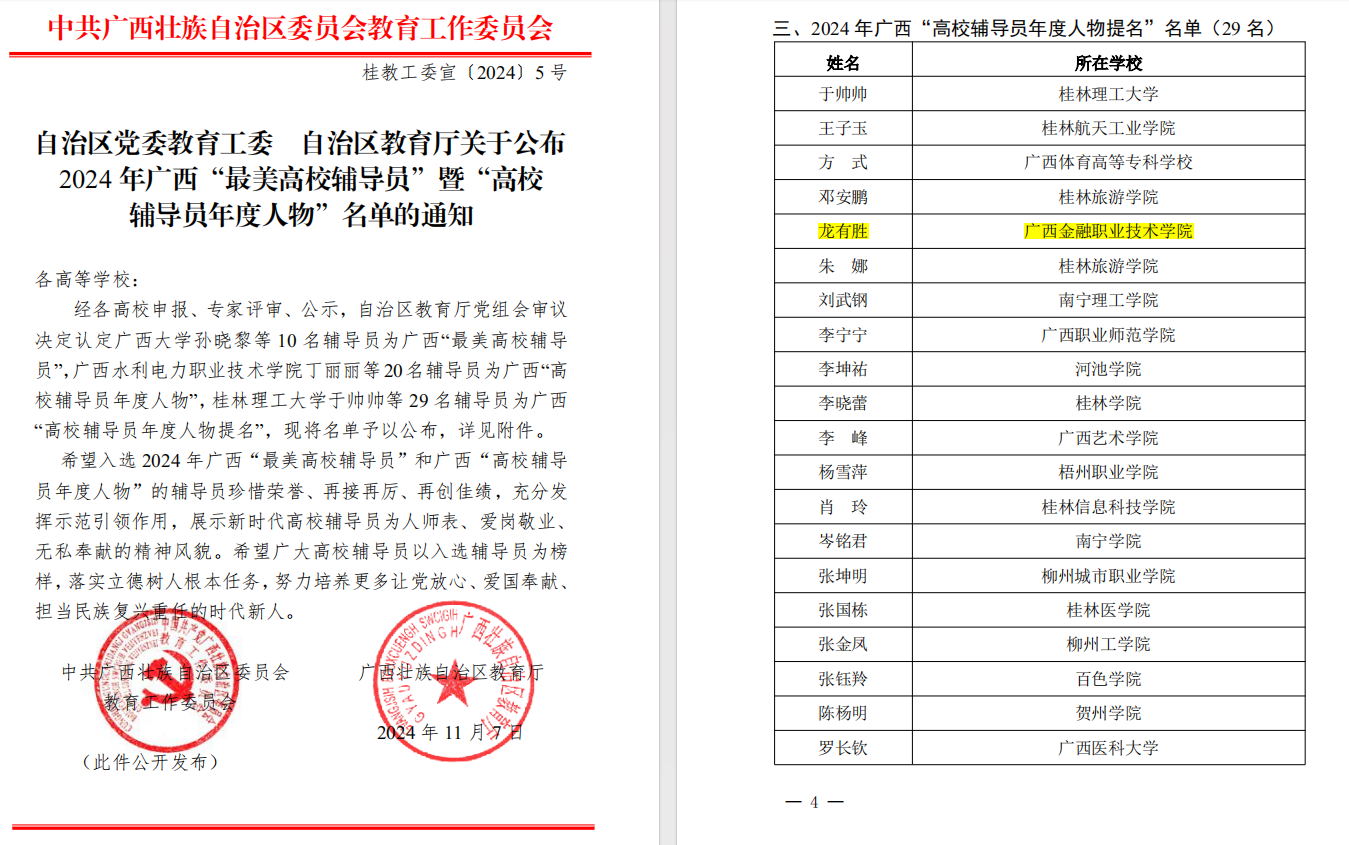 龙有胜老师获评2024年广西“高校辅导员年度人物提名”