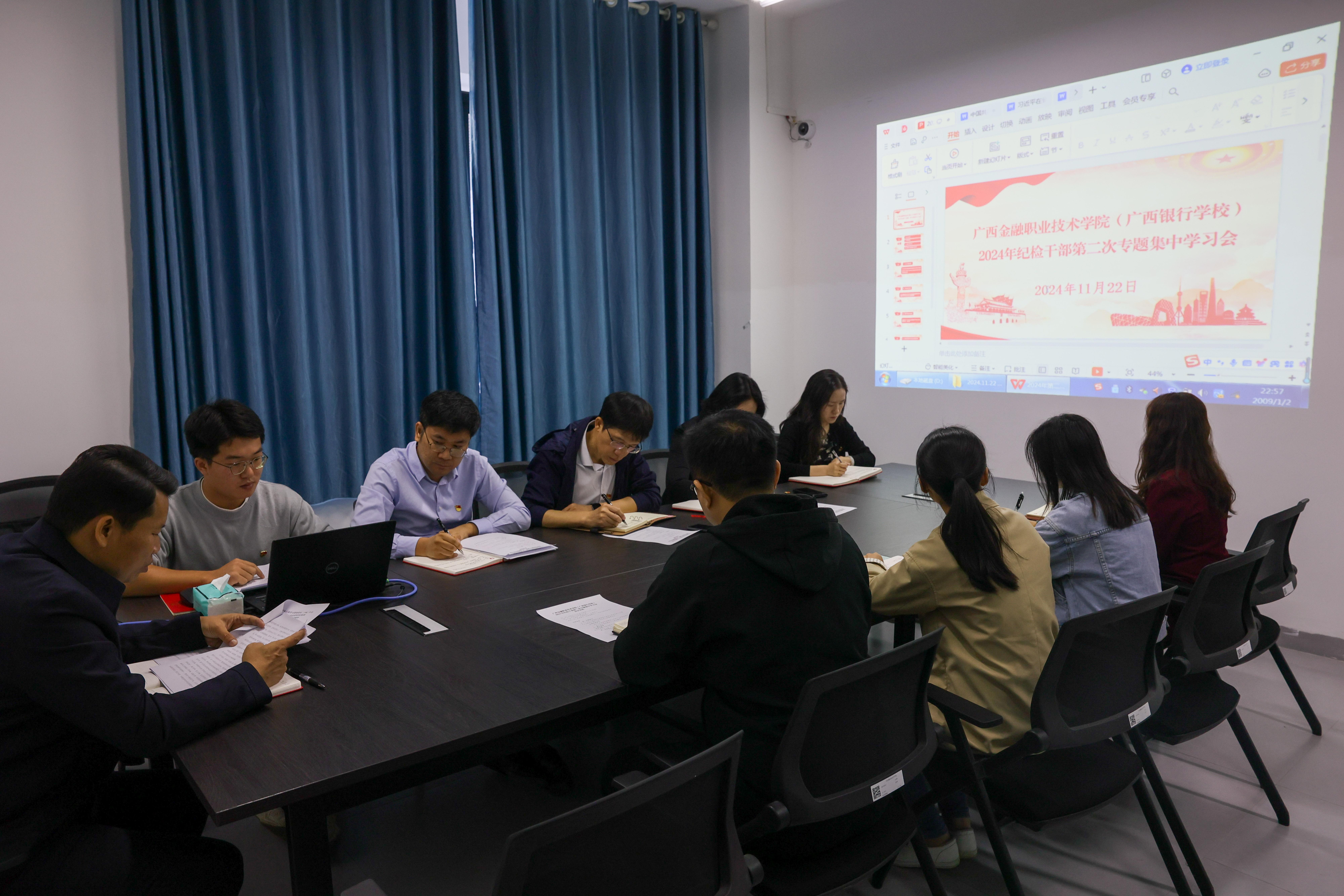11月22日上午,taptap点点纪委在西校区行政办公楼104会议室召开2024年纪检干部第二次专题集中学习会。学校纪委委员、机关各党支部纪检委员及纪检监察室全体人员参加会议。党委副书记、纪委书记刘华政主持会议并讲话。