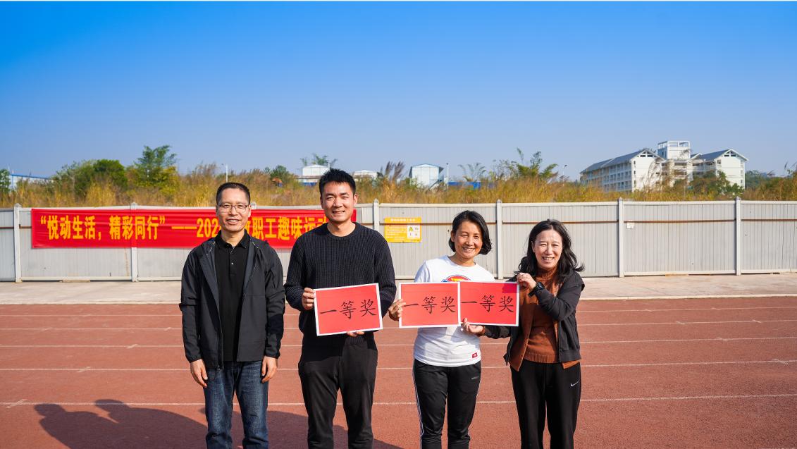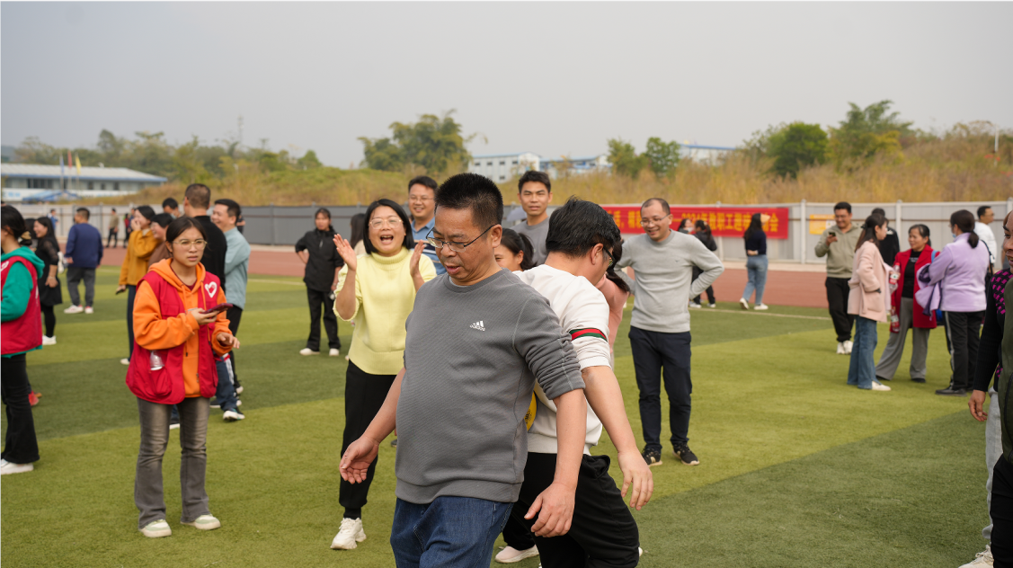 首先开始的是趣味运动会环节。毛毛虫接力便将气氛点燃,教职工们齐心协力、步伐一致地向着终点冲刺,现场加油声、欢笑声此起彼伏。背靠背夹球接力赛,大家配合默契,展现出团结协作的精神风貌。滚轮胎比赛中,选手们各显身手,在赛场上你追我赶,充满了趣味性和挑战性。整个运动会过程紧张激烈又不失欢乐祥和,充分展现了教职工们积极向上的团队协作精神。