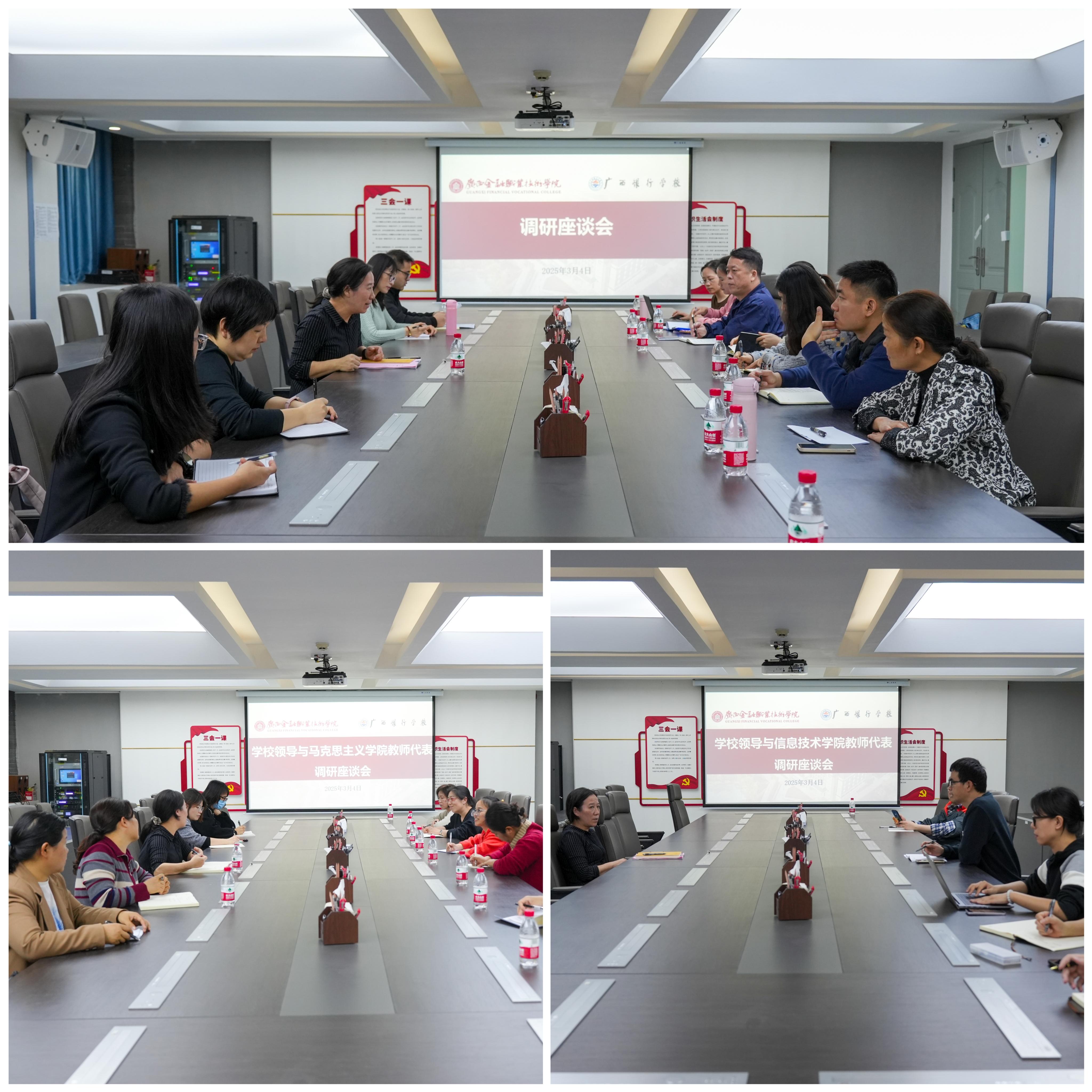 近日,校长莫海燕先后走访信息技术学院、马克思主义学院和人文教育学院。各学院领导班子成员、各专业带头人、各教研室主任、课程负责人和教师代表参加调研座谈会。