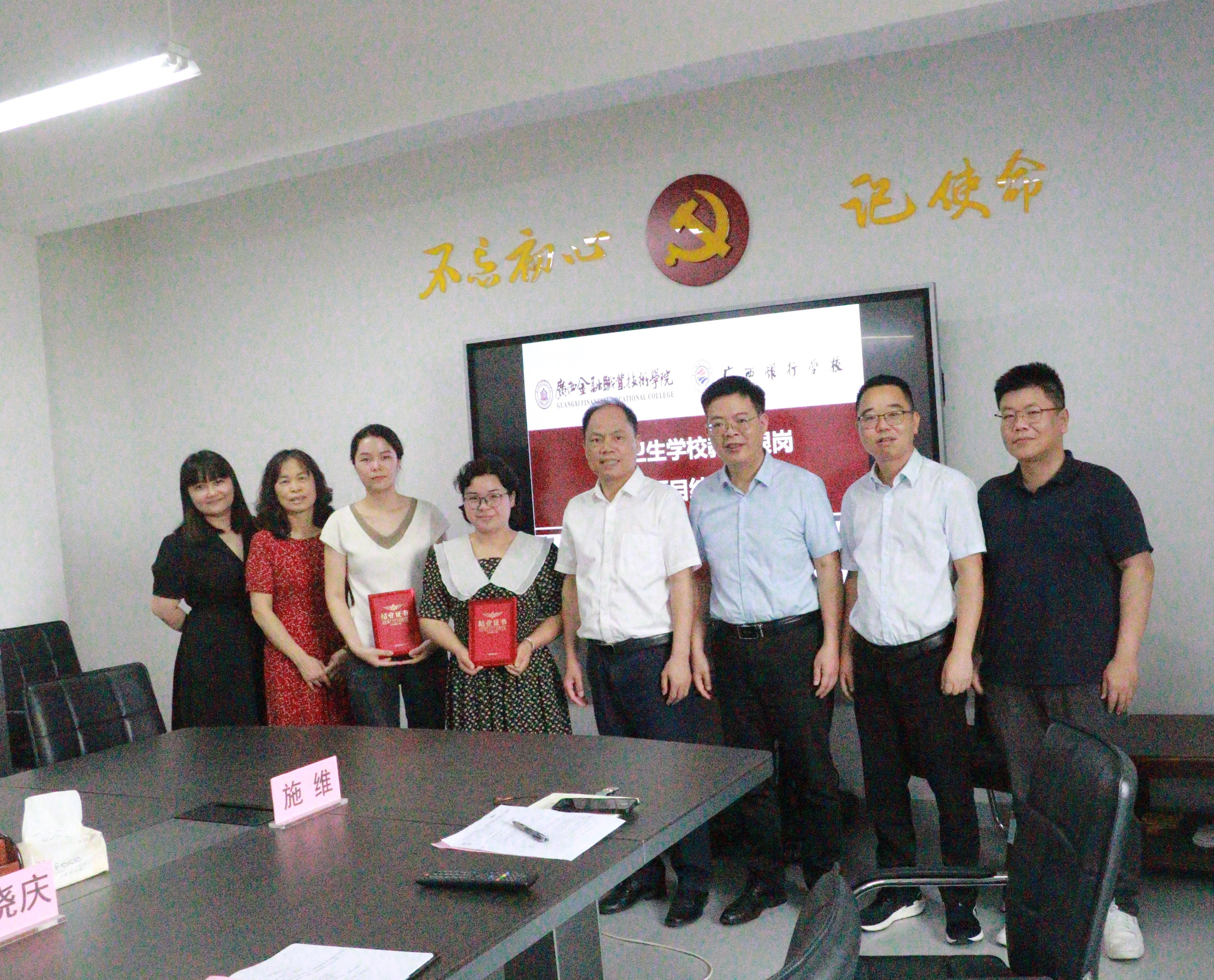 教务科研处处长张红梅、带教部门发展规划处处长韦滨及两名带教老师、金融学院副院长施维、会计学院副院长刘喆参加结业仪式。