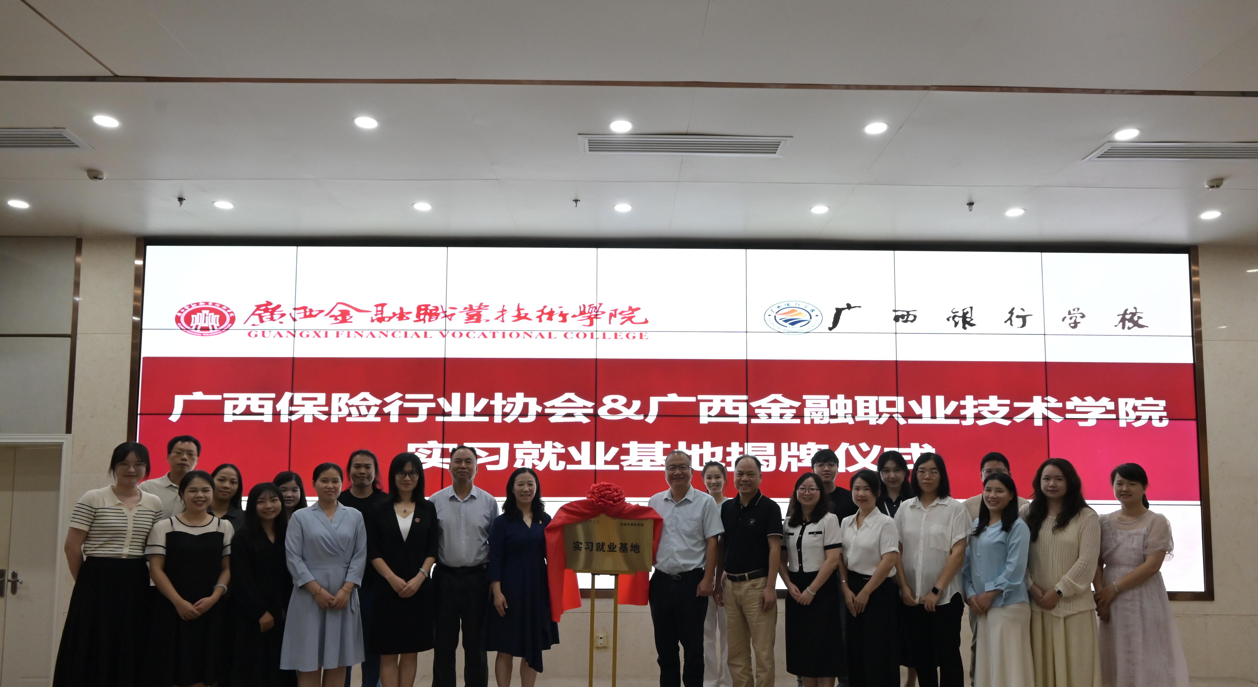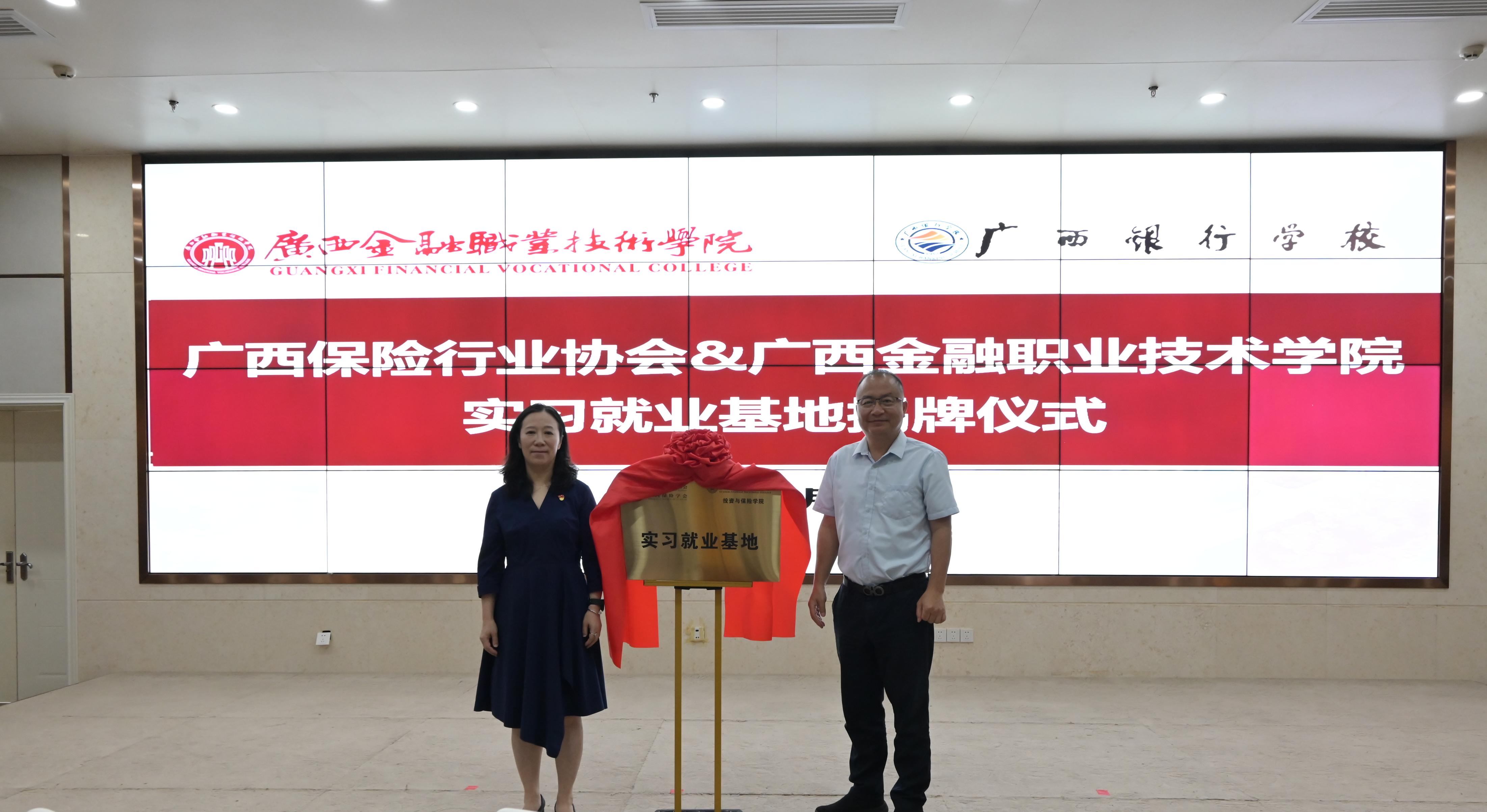 在全体参会人员的见证下,李河常务副会长与莫海燕校长双方签署合作协议,共同为“广西保险行业协会与taptap点点体育实习就业基地”揭牌。