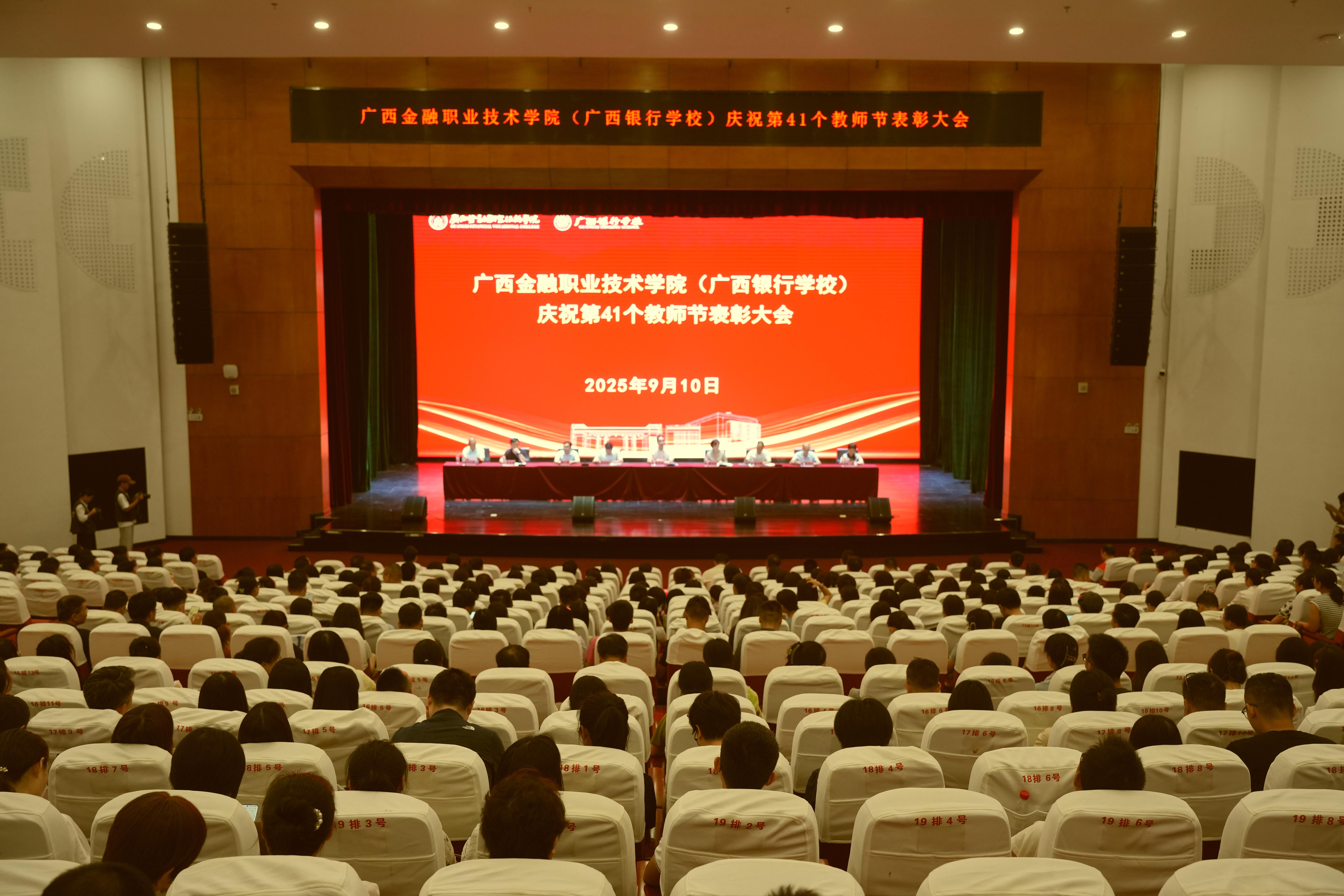 李高岩书记代表学校向全校教职工致以节日问候,向所有受到表彰的集体和个人表示祝贺,向新入职教师和离退休老同志表示欢迎与感谢。他全面回顾了一年来学校在教育教学方面取得的丰硕成果,强调这些成绩凝聚着广大教职工的智慧与汗水,是大家共同努力、团结奋斗的结果。同时他提出四点希望:一要坚守初心,做立德树人的“金融大先生”;二要深耕教学,做技艺精湛的“金融大工匠”;三要勇于创新,做教学科研的“金融探索者”;四要甘于奉献,做学生成长的“金融燃灯者”。他号召全校所有教职工始终牢记为党育人、为国育才的初心使命,持续以教育家精神为引领,以受表彰的先进为榜样,潜心教书育人,锐意改革创新,以更饱满的热情、更昂扬的斗志、更扎实的作风,凝心聚力,在服务教育强国、教育强区建设的新征程中交出无愧于时代的广西金职院(广西银校)答卷!
