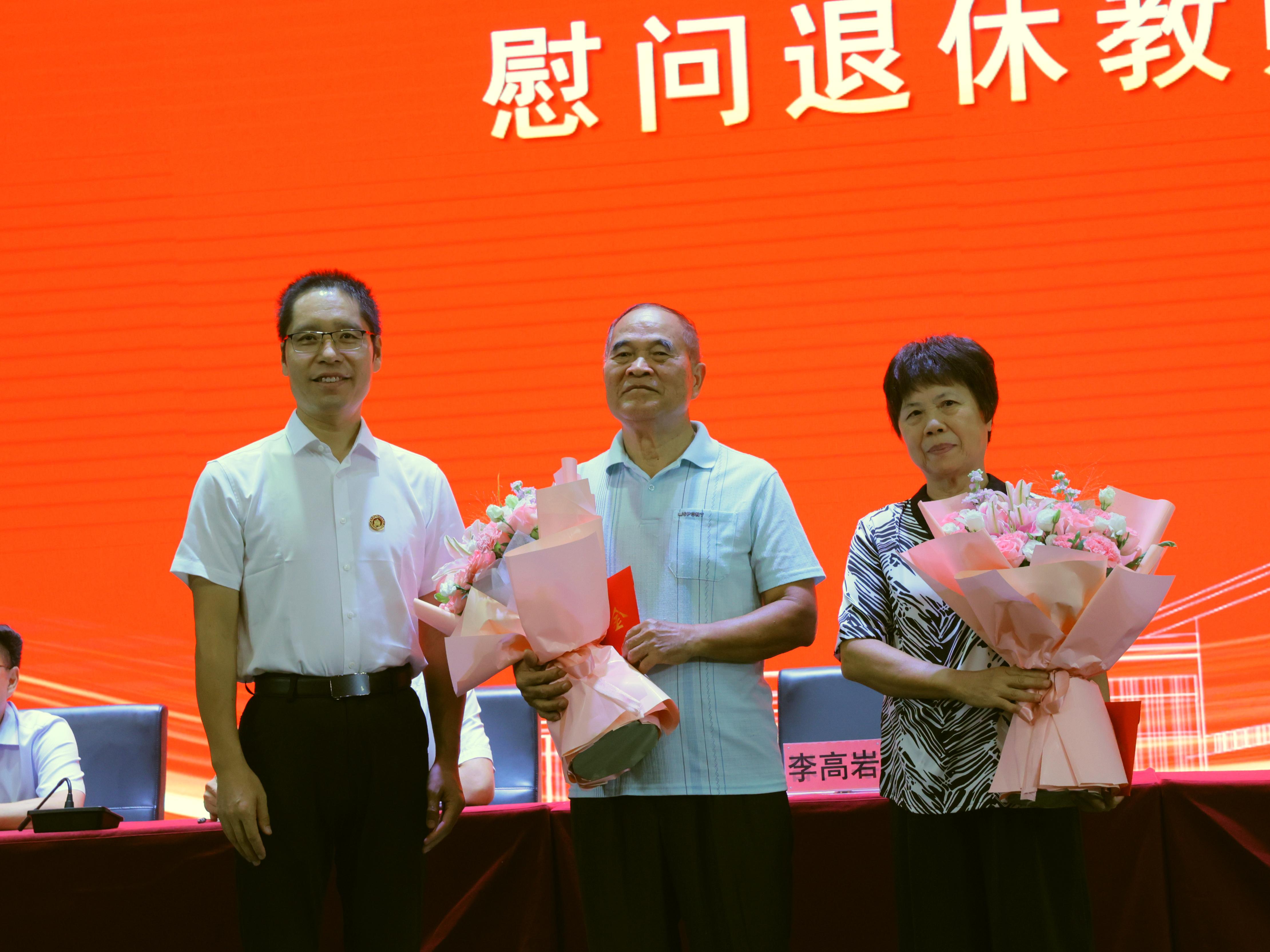 表彰大会在庄严的国歌声中拉开帷幕。学校党委书记李高岩为离退休教师代表发放慰问金并献上鲜花,感谢他们为学校发展作出的积极贡献。