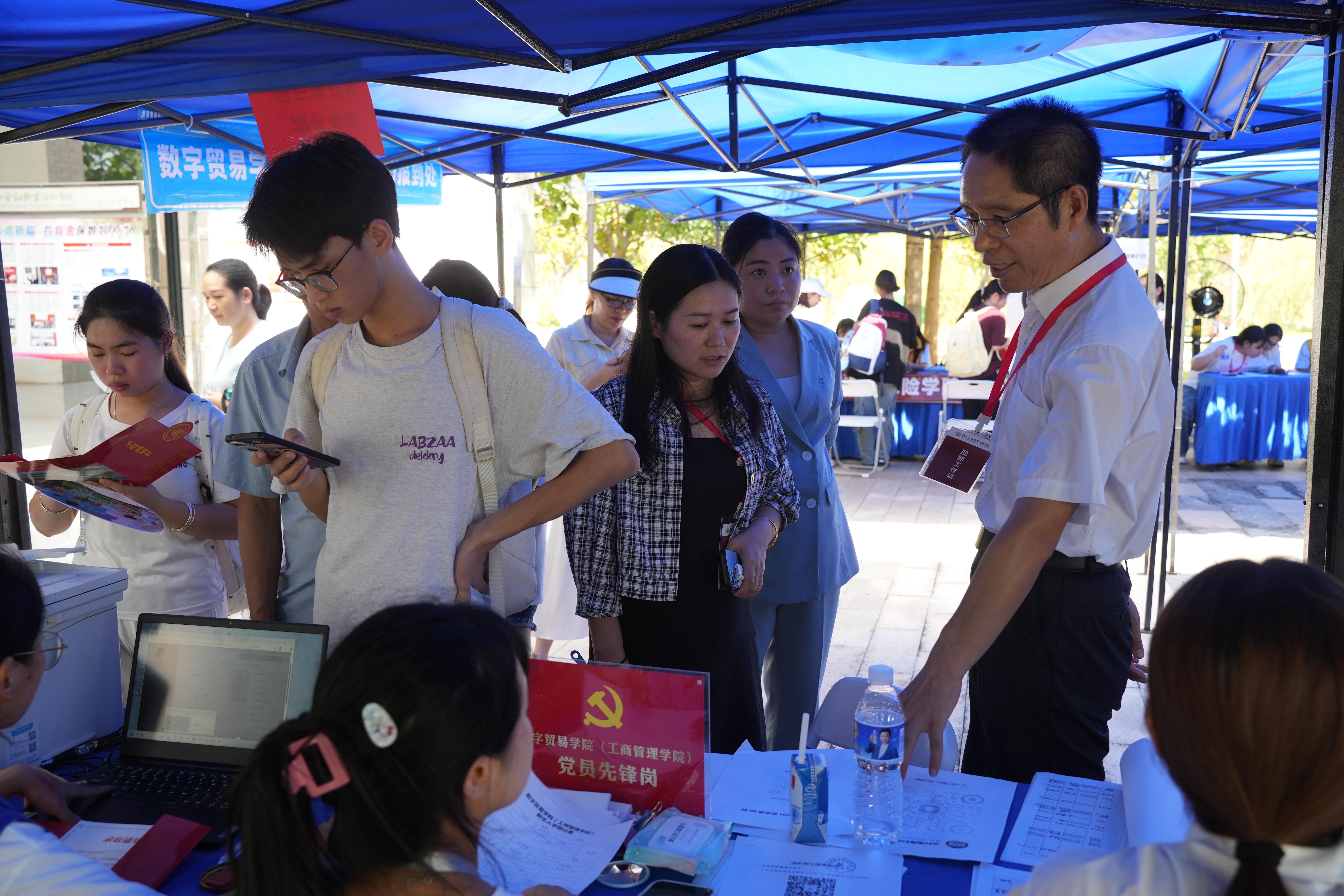 各学院报到处、宿舍登记处人头攒动,在工作人员和志愿者的有序组织和耐心引导下,报到过程紧张忙碌,但秩序井然。