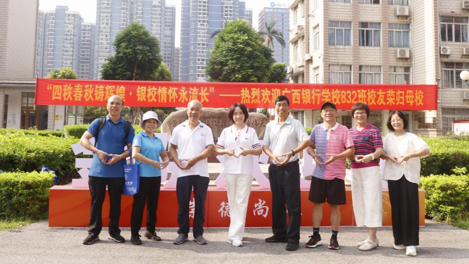 金秋九月,丹桂飘香。9月20日上午,广西银行学校832班40名校友毕业40周年返校团聚。学校招生就业处(校友办)联合职业发展协会志愿者,以“热情、周到、安全、节约”的服务理念,用一场仪式感满满的“回家”之旅,让校友们重温青春岁月,再叙师生情谊。