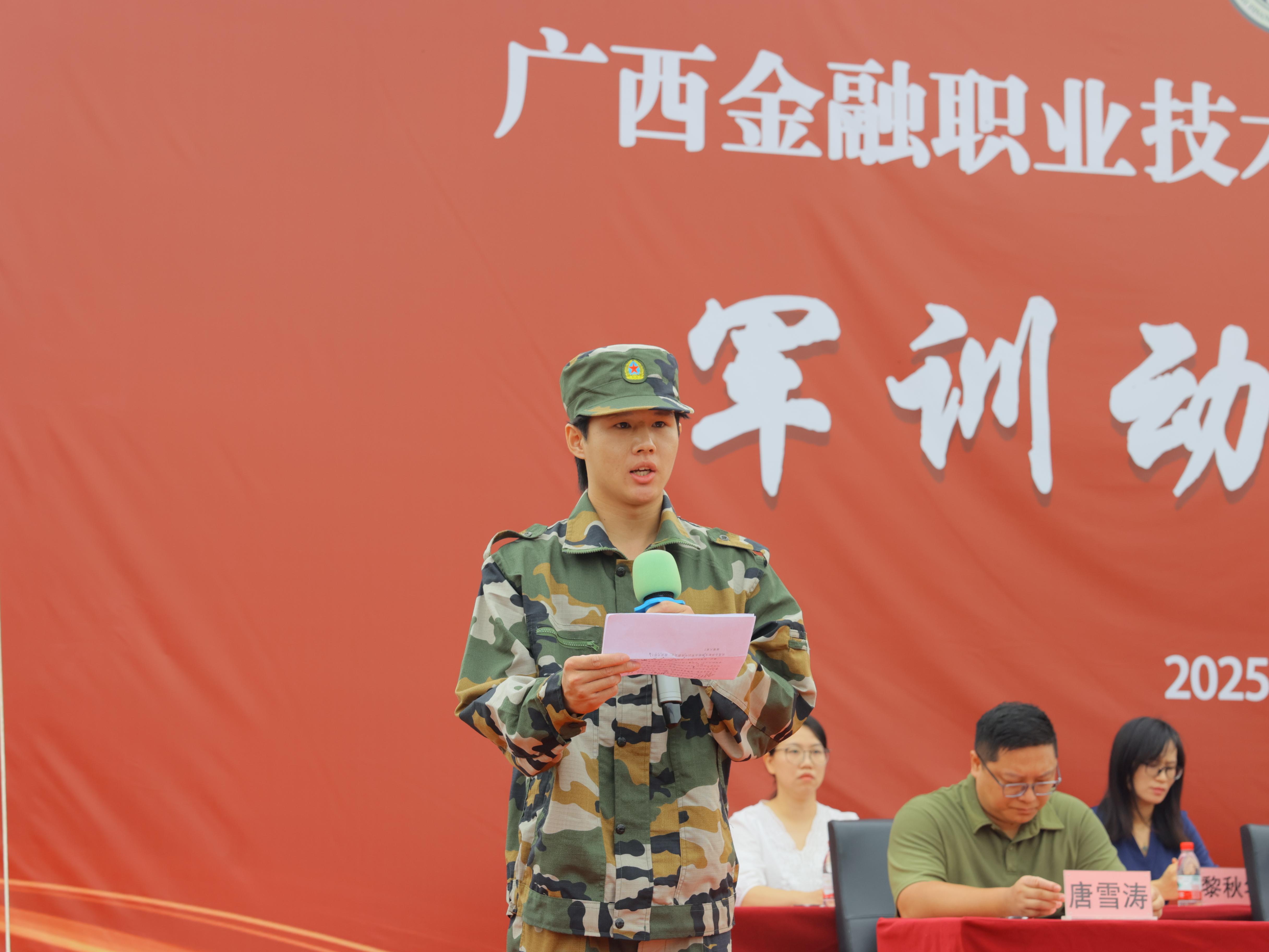 文化与旅游学院高铁乘务2502班梁娅萱同学、金融学院金融服务与管理2502班刘靖铭同学作为学生代表发言,他们表示会在烈日下挺直脊梁,展现青春的朝气;在训练中互帮互助,凝聚集体的力量;在休息时交流分享,收获珍贵的友谊。我们要把军训中的收获转化为学习的动力,在taptap点点体育的沃土上,书写属于我们这一代人的青春华章。