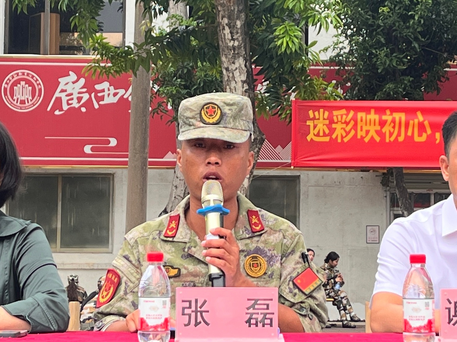 两校区军训团团长莫明锐、张磊在发言中要求全体受训学生严守训练纪律,做到令行禁止,坚决服从教官指挥;以坚韧之志迎挑战,以顽强之心克难关;在团队中学会担当、传递温暖,成为荣辱与共的“铁血集体”。军训团团长代表全体教官承诺以最严谨的执教态度、最科学的教学方法、最饱满的军人热情完成本次军训任务。