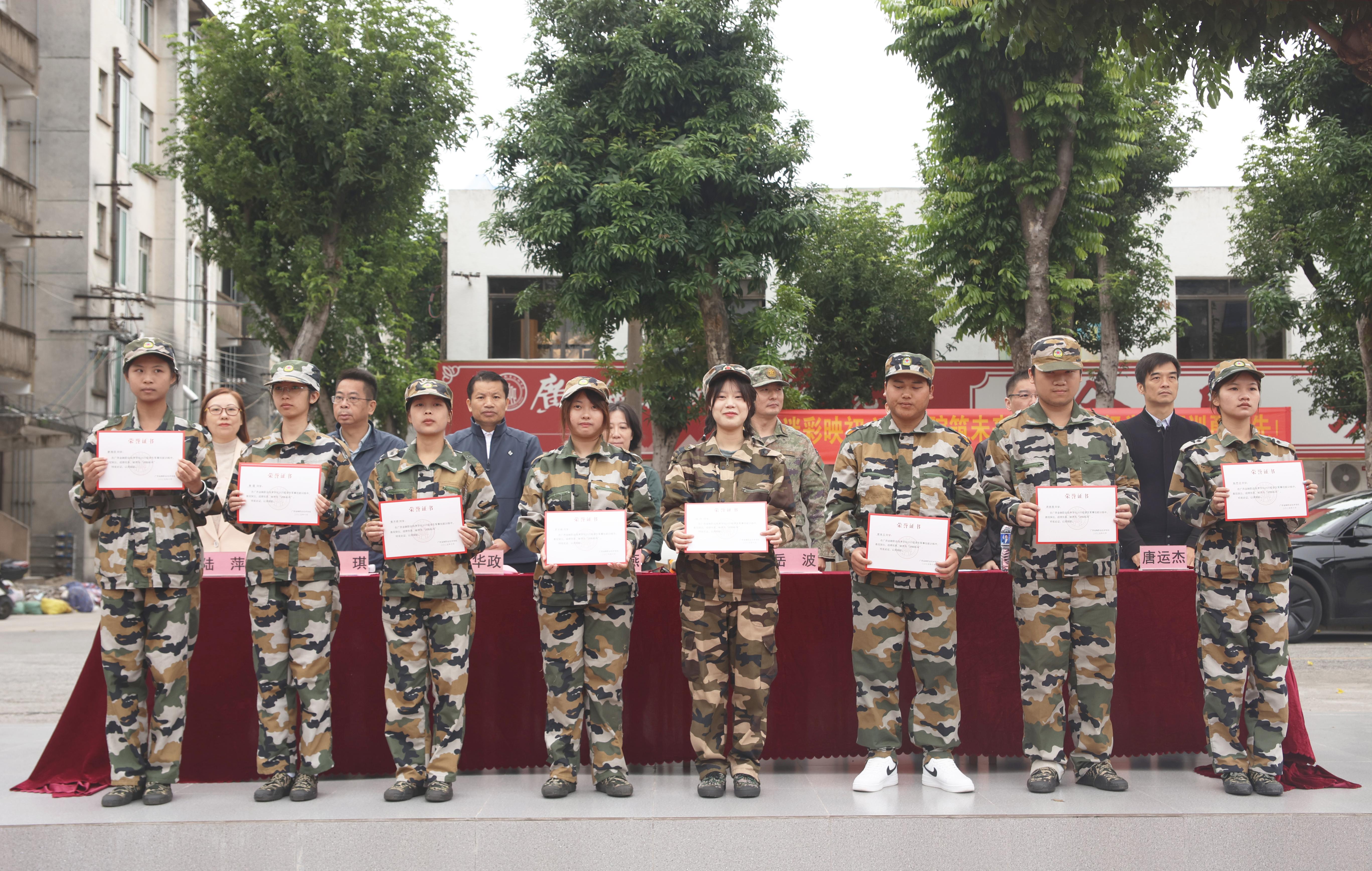 西乡塘区人民武装部领导作军训总结,肯定了教官、班主任、辅导员和同学们共同付出和努力。