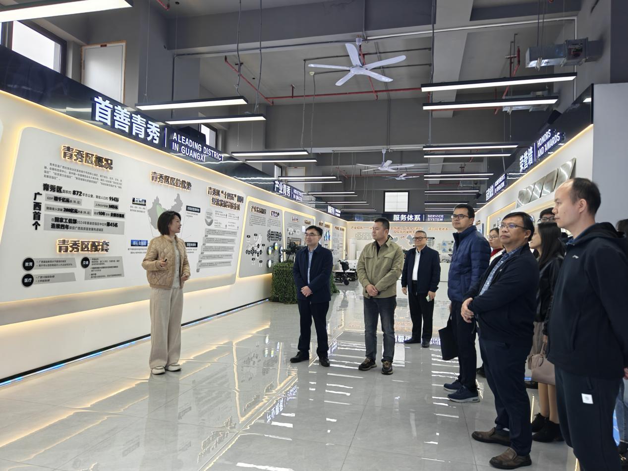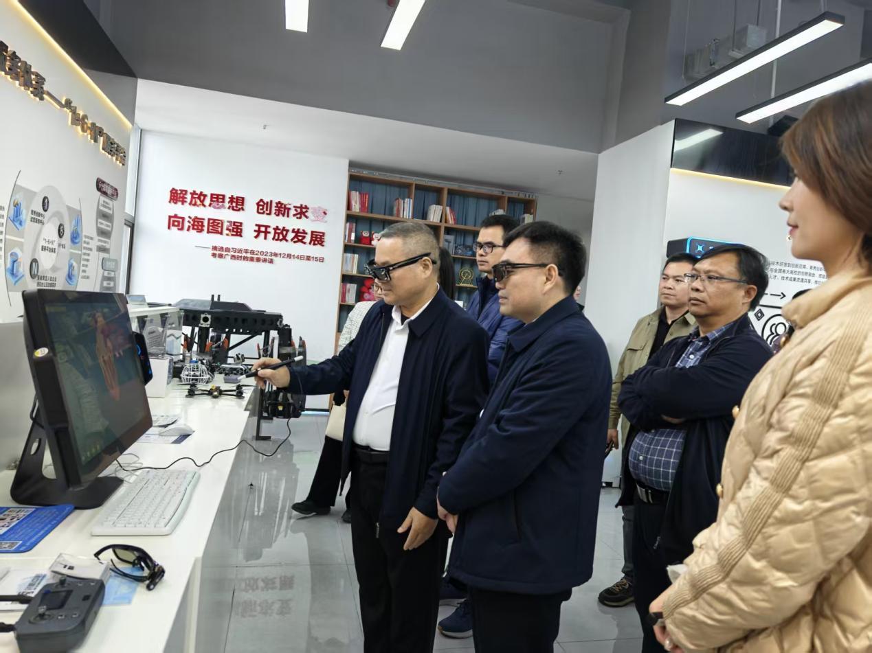 活动伊始,潘大胜副校长在青秀创新中心总经理李振兴的陪同下参观调研,实地了解了中心的运营模式、产业布局及其发展规划。期间,还观摩了中心在人工智能、低空经济、VR等领域的尖端技术及其应用场景,全面展示了园区企业在前沿科技领域的创新成果。