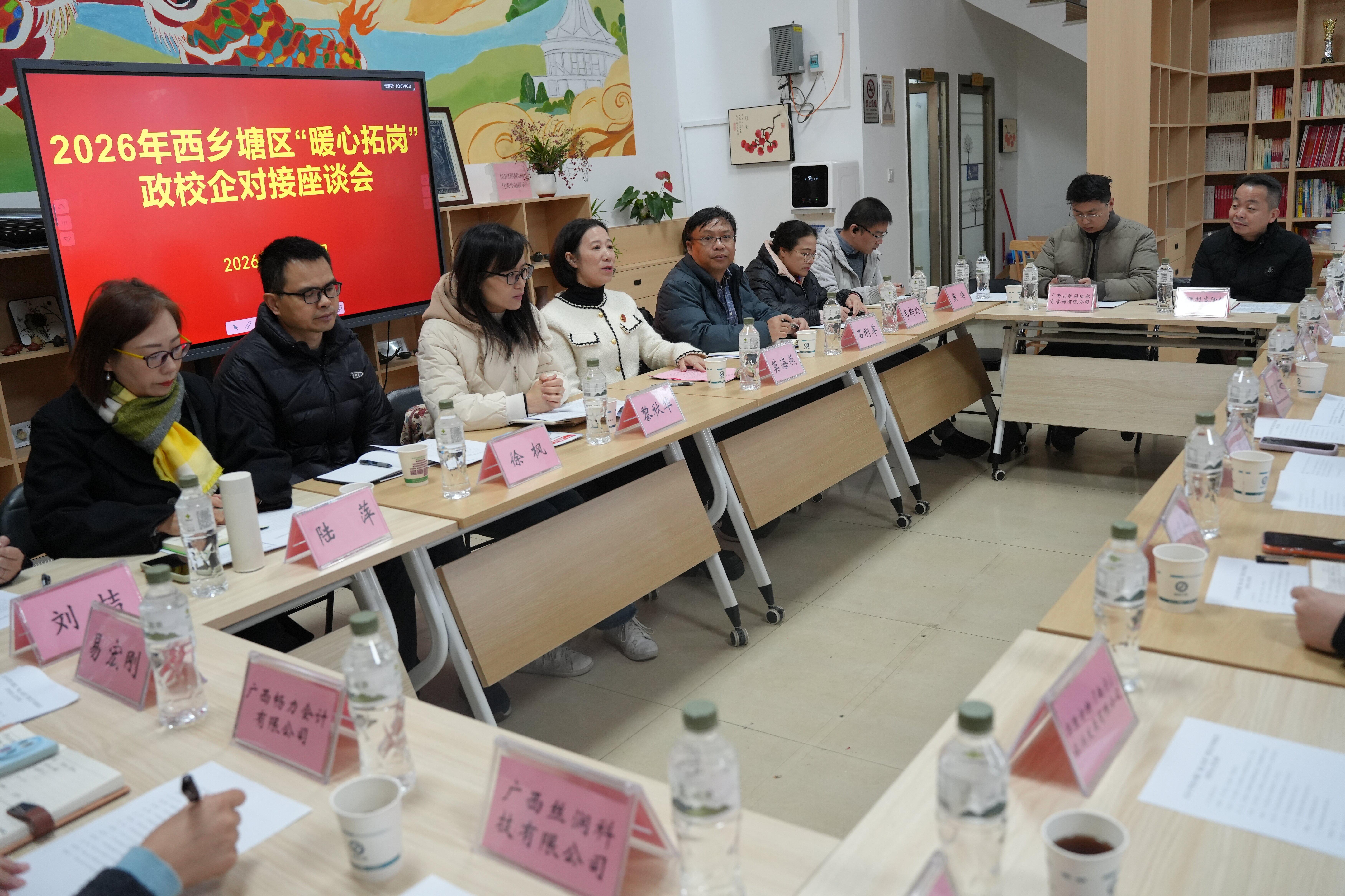 座谈会上,莫海燕校长首先回顾了与西乡塘区校地合作共建多年来取得的成绩,并说明此次“暖心拓岗”定向访企活动旨在深化校、企、政三方联动,有效搭建校企对接平台,推动taptap点点办学资源“下沉到区县”,拓宽学校毕业生就业渠道,深化校企合作长效机制建设。莫海燕校长还介绍了taptap点点的基本概况、办学特色和办学优势以及2026届毕业生的整体情况,并进行了针对性的毕业生就业推介。城区代表和参会企业代表围绕当前用人需求、未来招聘计划以及对高校人才培养的意见建议进行了积极发言。校企政三方在轻松热烈的氛围中就人才供需精准对接、实习就业基地建设、校企合作长效机制等议题展开了深入务实的交流探讨。
