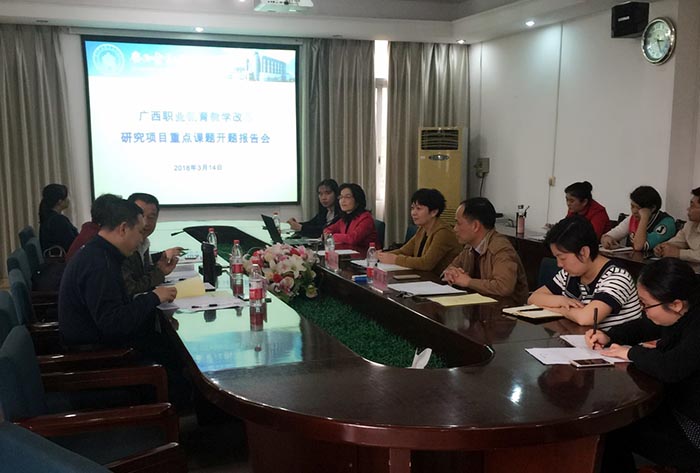3月14日下午,taptap点点在东校区办公楼5楼会议室举行广西职业教育教学改革研究项目重点课题《“一带一路”背景下中高职英语课程衔接研究——以财经商贸类专业为例》及《金融职业教育服务惠普金融,助推金融扶贫探索与研究》开题报告会。此次开题报告会由学院谢沛善副院长主持,学院党委书记沈立君出席会议,广西教育研究院林少棉研究院、广西交通职业技术学院彭朝晖教授、广西机电职业技术学院李晓东教授等组成的专家组对课题进行了评议和指导。