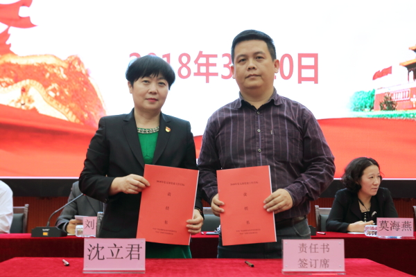 沈立君书记分别与各党支部签订了《2018年党支部建设目标责任书》和《2018年党支部全面从严治党主体责任书》。