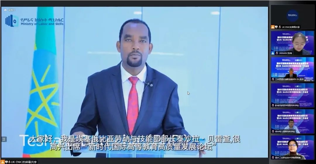 英国驻华大使馆国际贸易部教育与技能司副主任王晓静,埃塞俄比亚劳动与技能部国务部长特沙尔·贝雷查,全球工匠联盟主席乔瓦尼·科里森,英国国家学历学位评估认证中心执行董事保罗·诺里斯,英国国家学历学位评估认证中心中方理事会秘书长焦满生分别为大会致辞。