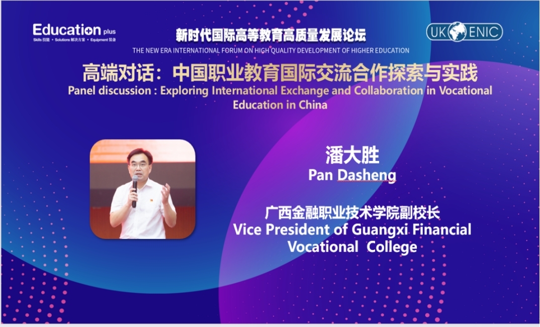 在论坛的高端对话中,副院长潘大胜与广东建设职业技术学院校长赵鹏飞等学者、教育工作者以及资深行业人士,共同探讨高等职业教育领域国际合作交流的发展之道。