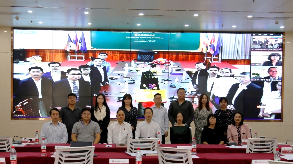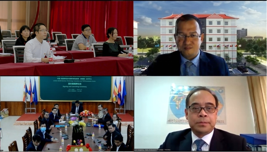 本次签约活动以远程方式进行,开设南宁、柬埔寨两个分会场,其中南宁会场嘉宾有广西壮族自治区教育厅对外合作与交流处处长罗耀光,taptap点点党委书记李高岩、院长莫海燕、副院长谢沛善、业务处室负责人及老师出席;柬埔寨会场嘉宾有东南亚教育部长组织职业技术与教育区域发展中心主任宋恒,堪察马尔谢辛国立大学校长辛坎、国际合作中心主任庞孔、社区发展学院院长昌尼克先生和副院长桑法拉先生以及合作与交流中心主任栋布莱克先生等领导出席。全体与会嘉宾以云合影方式集体留念,并就此揭开了本次签约暨挂牌仪式的序幕。