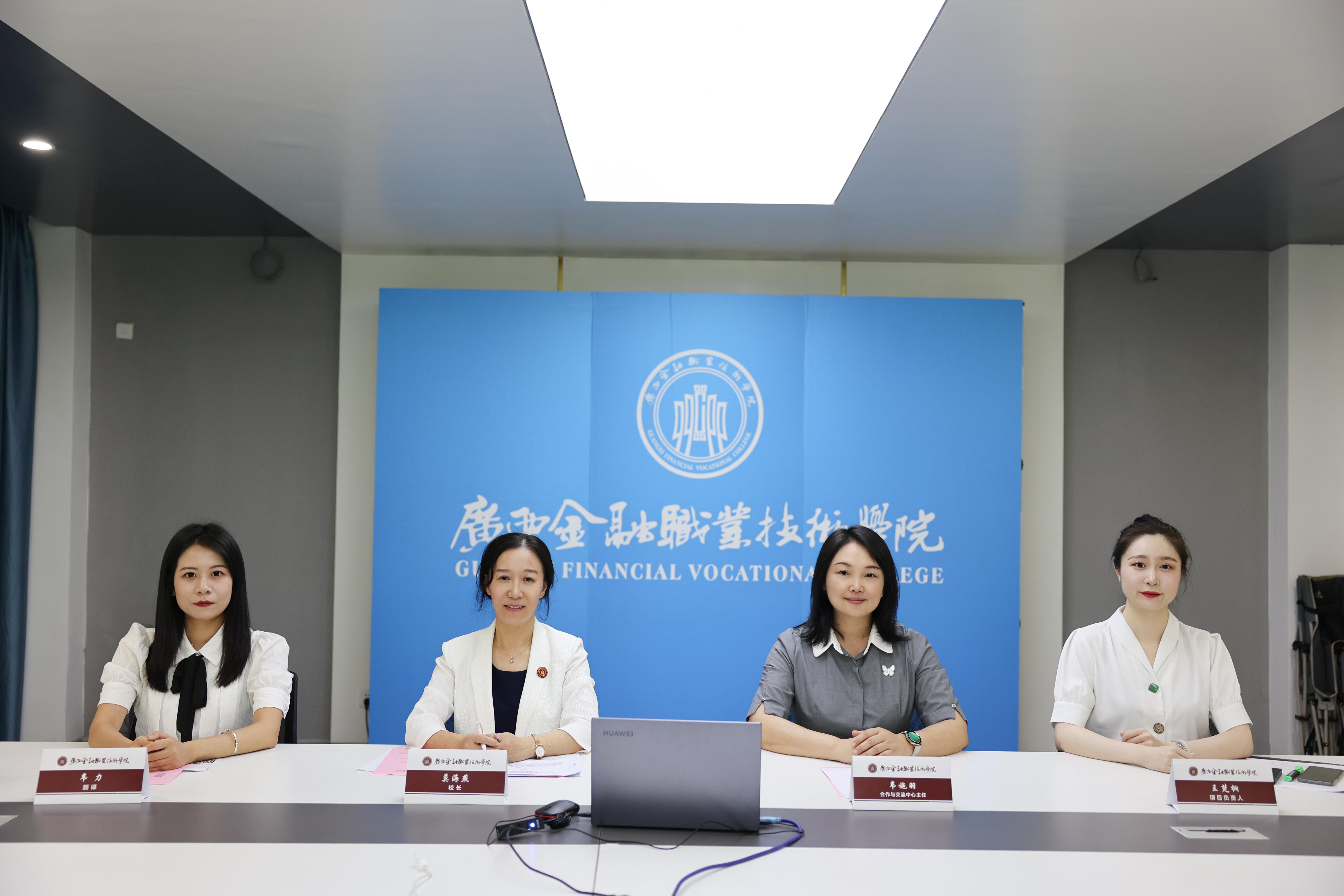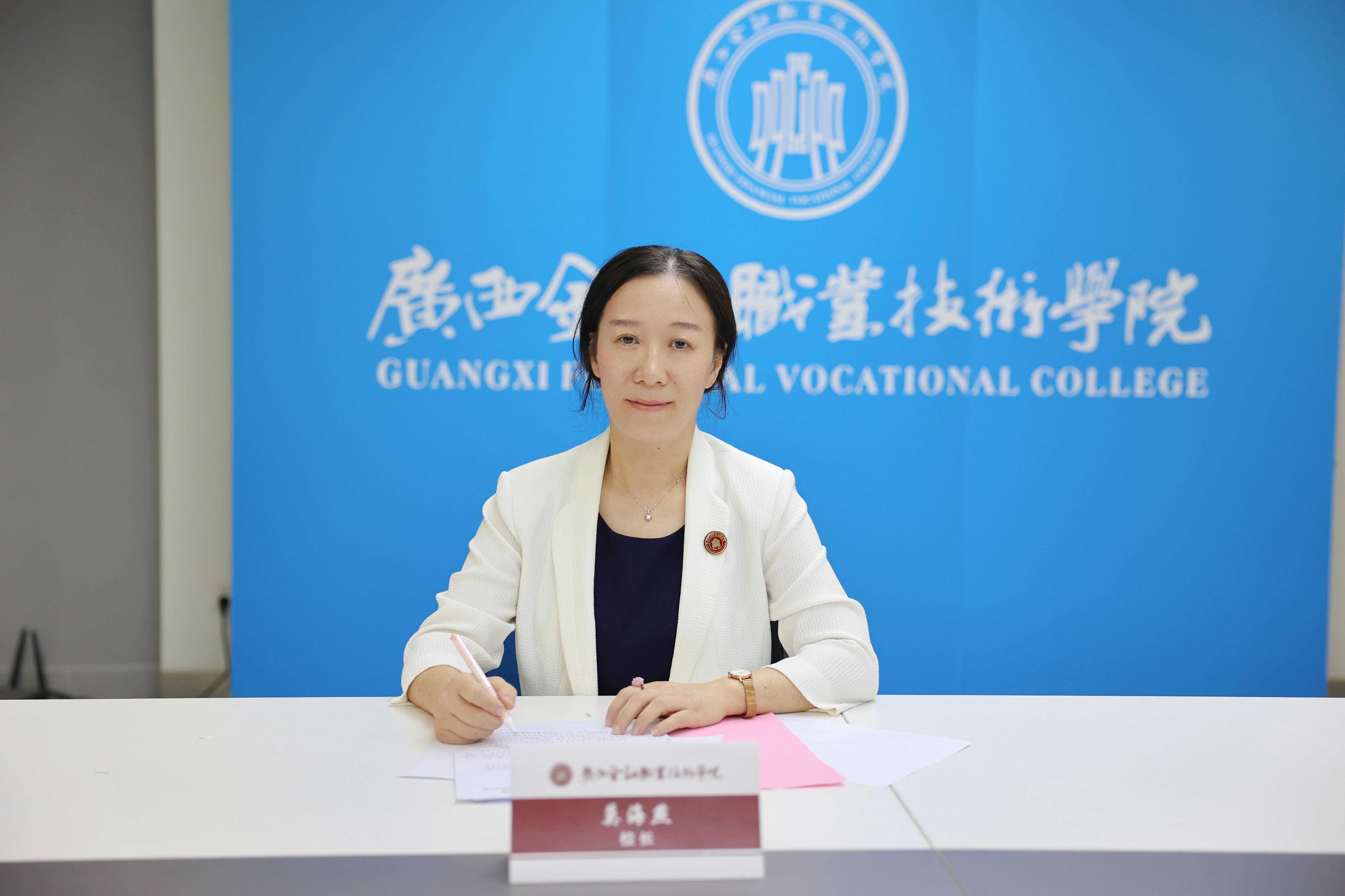 莫海燕校长在致辞中表示,中国和东盟山水相连、人文相通,友好交往源远流长。今年是中国东盟全面战略伙伴关系开局之年和RCEP生效实施之年。做为广西“双高计划”建设学校,和享有“广西金融人才的摇篮”之美誉高等职业学校,我们愿与各国职业学校一道,共同深入贯彻落实习近平主席和东盟国家领导人达成的系列共识,我们愿与东盟国家职业学校建立多层次、立体化的教育交流合作,为构建更为紧密的中国—东盟命运共同体提供强大的文化支撑。