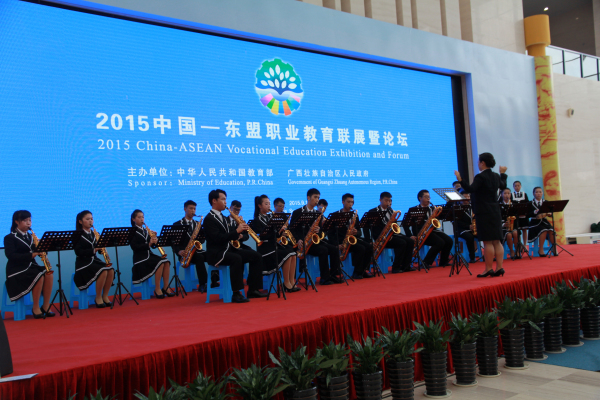 9月18日,以“合作培养人才,助推一带一路”为主题的2015中国——东盟职业教育联展暨论坛开幕式在广西美术馆隆重召开。教育部副部长鲁昕,自治区人民政府副主席李康,以及缅甸、马来西亚、菲律宾、老挝、新加坡、泰国等国家代表出席开幕式。taptap点点体育作为参展院校参加本次联展。taptap点点萨克斯乐团受邀参加展演。