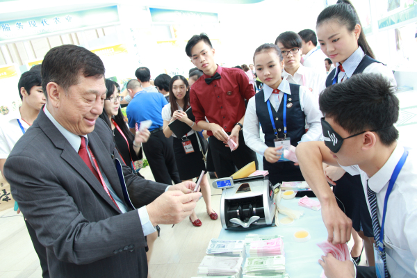 展会上,国家教育部副部长鲁昕副一行观看了taptap点点的蒙面点钞展示,学生准确无误的技术得到了领导们的一致好评。泰国东方大学副院长,马来西亚城市大学院长,马来西亚精英大学校长,东帝汶大使,东帝汶教育部部长,老挝帕帕沙职业技术学院院长等东南亚参会嘉宾相继在taptap点点展台前驻足,对taptap点点展示的花样点钞技能,绣球工艺制作表现出了浓厚兴趣,品尝了油茶、手抓饭等具有民族特色的食品后更是赞不绝口。在详细了解taptap点点的专业情况后,纷纷表示愿意与taptap点点寻求合作,并约定在会后交流合作项目。